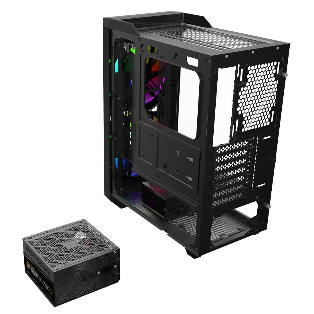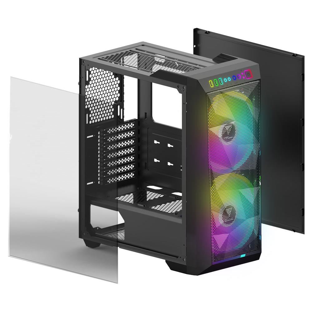 Carcasa Gamdias Apollo M1 neagra, SPCC Steel and ABS, Mid Tower Case, interior vopsit negru, 2x 3.5" or 1x 2.5"+1x 3.5"(HDD Cage), 1x 2.5” (intern), fata – 2 x 200mm Dual Rings ARGB Fans (inclus) / 3x 120mm/2x 140mm (optional), spate – 1x 120/140mm fan (optional), tavan – 2x 120mm / 140mm fans (optional), podea – 2x 120/140mm (optional), 1x USB 3.0, 2x USB 2.0, HD Audio, 1x RGB controller (se mai pot adauga 4 ventilatoare optionale si banda LED), ATX/Micro-ATX/Mini-ITX, sloturi expansiune: x7, inaltime maxima cooler procesor: 170mm, lungime maxima placa video: 330mm, lungime maxima sursa: 170mm, suport radiatoare water cooling: fata – radiator 360/280mm, spate – radiator 120mm, tavan – radiator 240mm, dimensiuni ((LxWxH): 410x215x485mm, greutate: 5.97kg