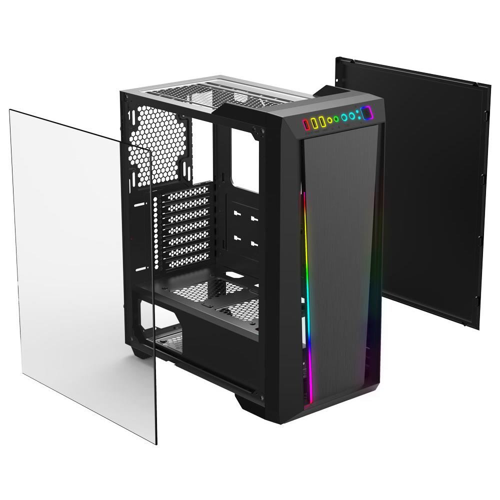 Carcasa Gamdias Argus M2 neagra, SPCC Steel and ABS, Mid Tower Case, interior vopsit negru, 2x 3.5" sau 1x 2.5"+1x 3.5"(HDD Cage), 1x2.5” (intern), fata – 3x 120mm / 2x 140mm (optional), spate – 1x 120/140mm fan (optional), tavan – 2x 120/140mm fans (optional), podea – 2x 120mm fans (optional), 1x USB 3.0, 2x USB 2.0, HD Audio, ATX/Micro-ATX/Mini-ITX, sloturi expansiune: x7, inaltime maxima cooler procesor: 170mm, lungime maxima placa video: 330mm, lungime maxima sursa: 170mm, suport radiatoare water cooling: fata – radiator 360/280mm, spate – radiator 120mm, tavan – radiator 240mm, dimensiuni ((LxWxH): 410x215x485mm, greutate: 6.8kg