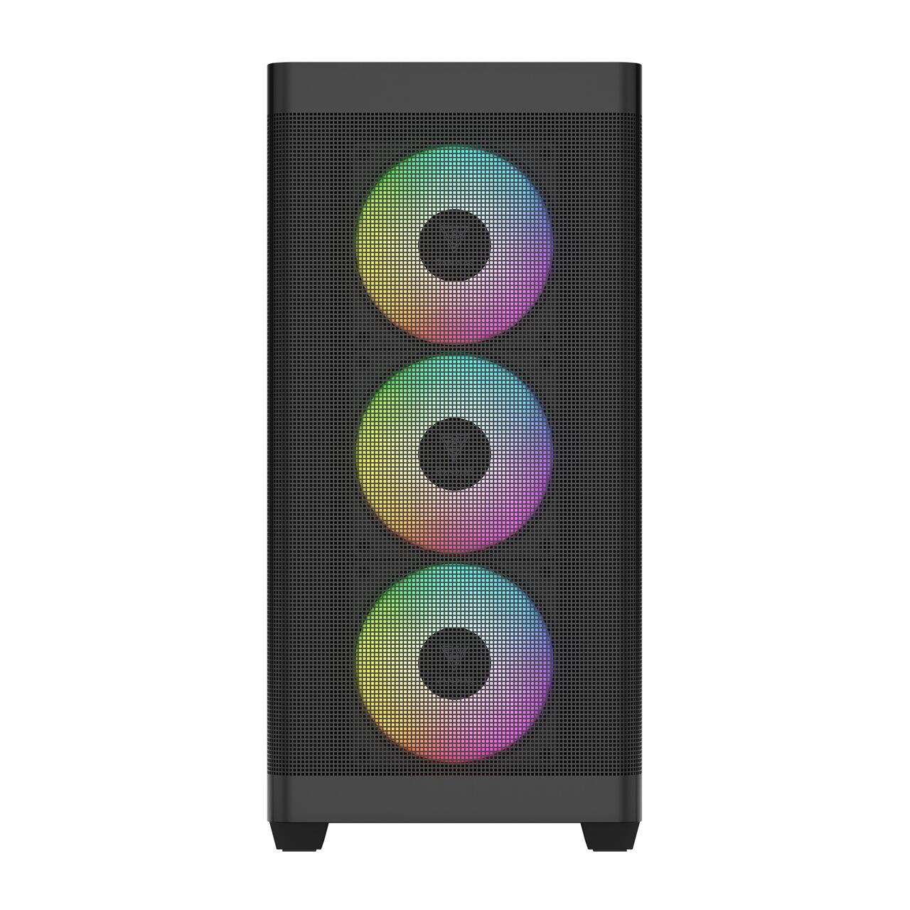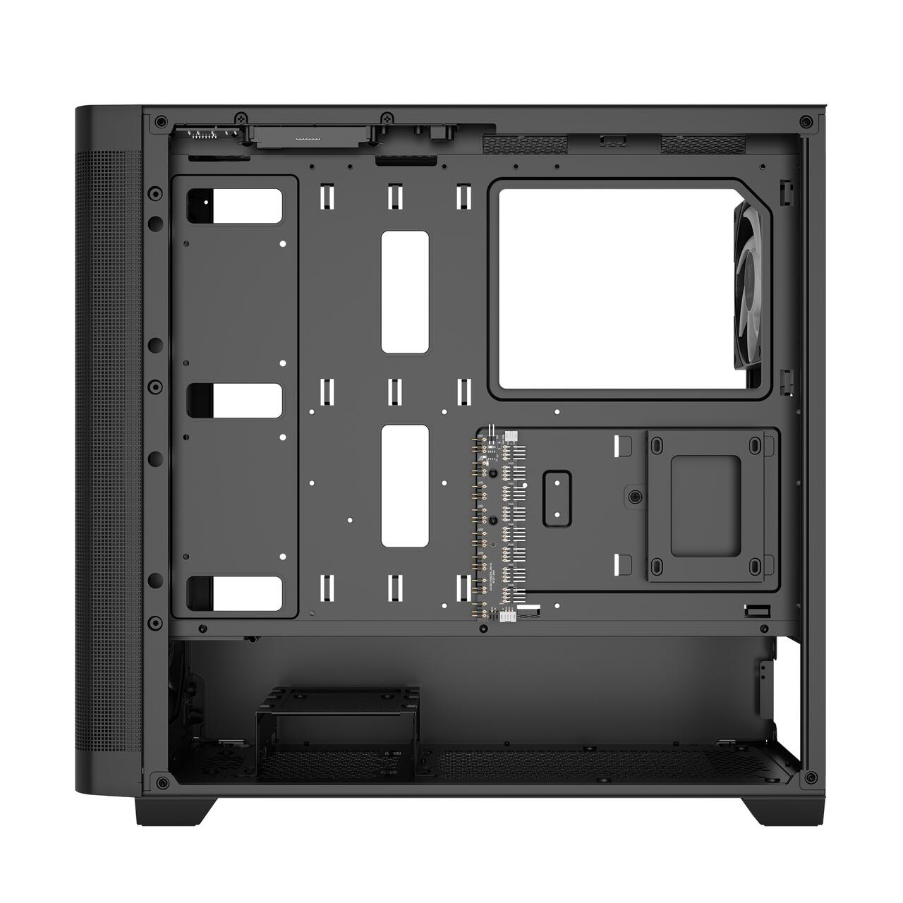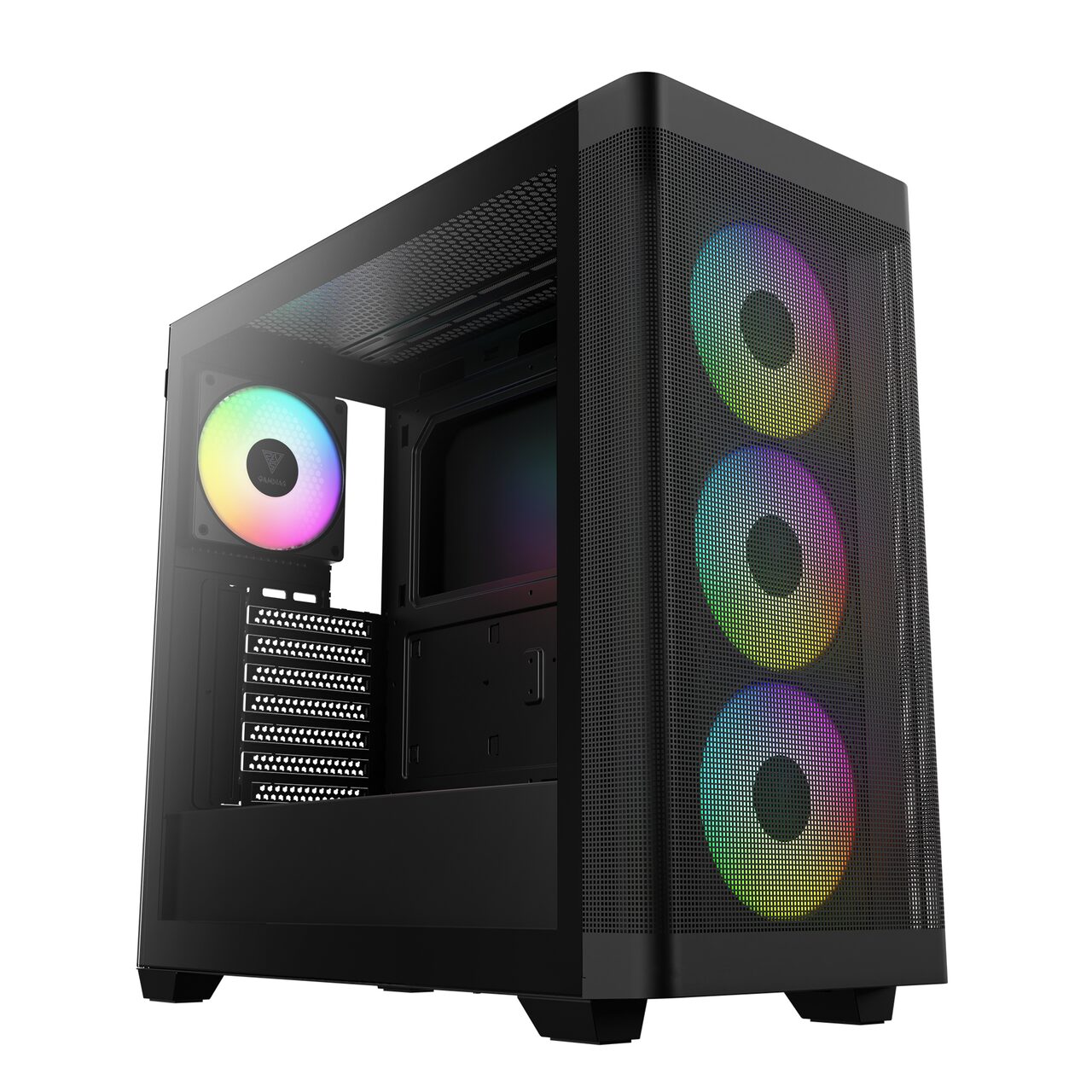 Carcasa Gamdias Athena M3 neagra, SPCC & ABS & Tempered glass, Mid Tower Case, interior vopsit negru, 2x 3.5" sau 1x 2.5"+1x 3.5"(HDD Cage), 4x 2.5” (intern), fata – 3x 120mm aRGB LED Fans (inclus), spate – 1x 120mm aRGB LED Fans (inclus), tavan – 3x 120mm / 2x 140mm fans (optional), 1x USB 3.0, 1x USB Type-C, HD Audio, E-ATX/ATX/Micro-ATX/Mini-ITX, sloturi expansiune: x7, design premium cu panou lateral din sticla securizata, HUB aRGB inclus cu 8 port-uri (4 port-uri sunt ocupate de ventilatoarele montate pe carcasa), inaltime maxima cooler procesor: 170mm, lungime maxima placa video: 420mm, lungime maxima sursa: 200mm, suport radiatoare water cooling: fata – radiator 360mm, spate – radiator 120mm, tavan – radiator 360mm, dimensiuni ((LxWxH): 460x218x450mm, greutate: 6.59kg