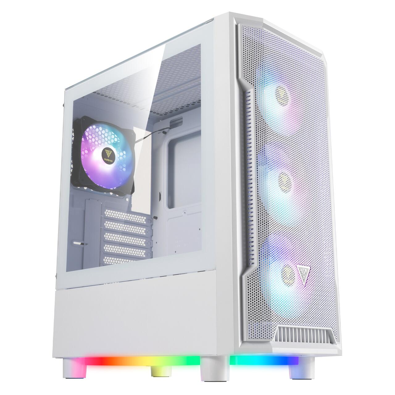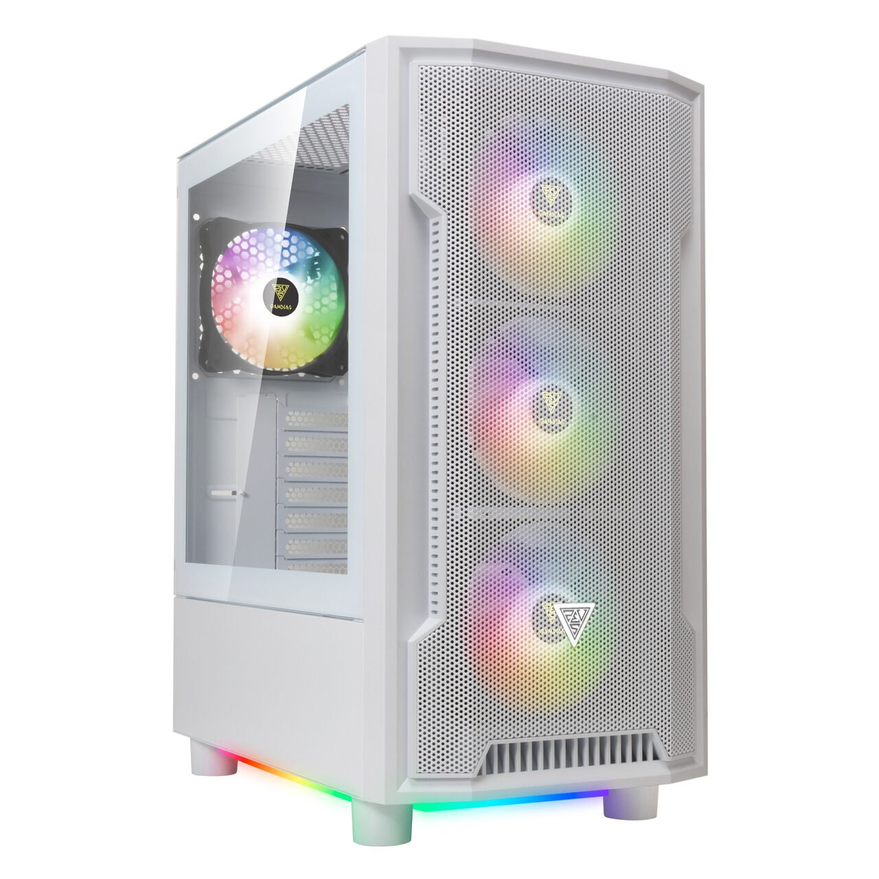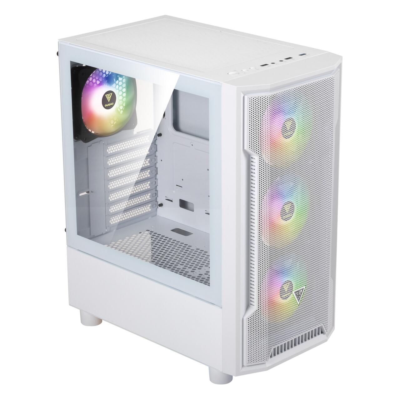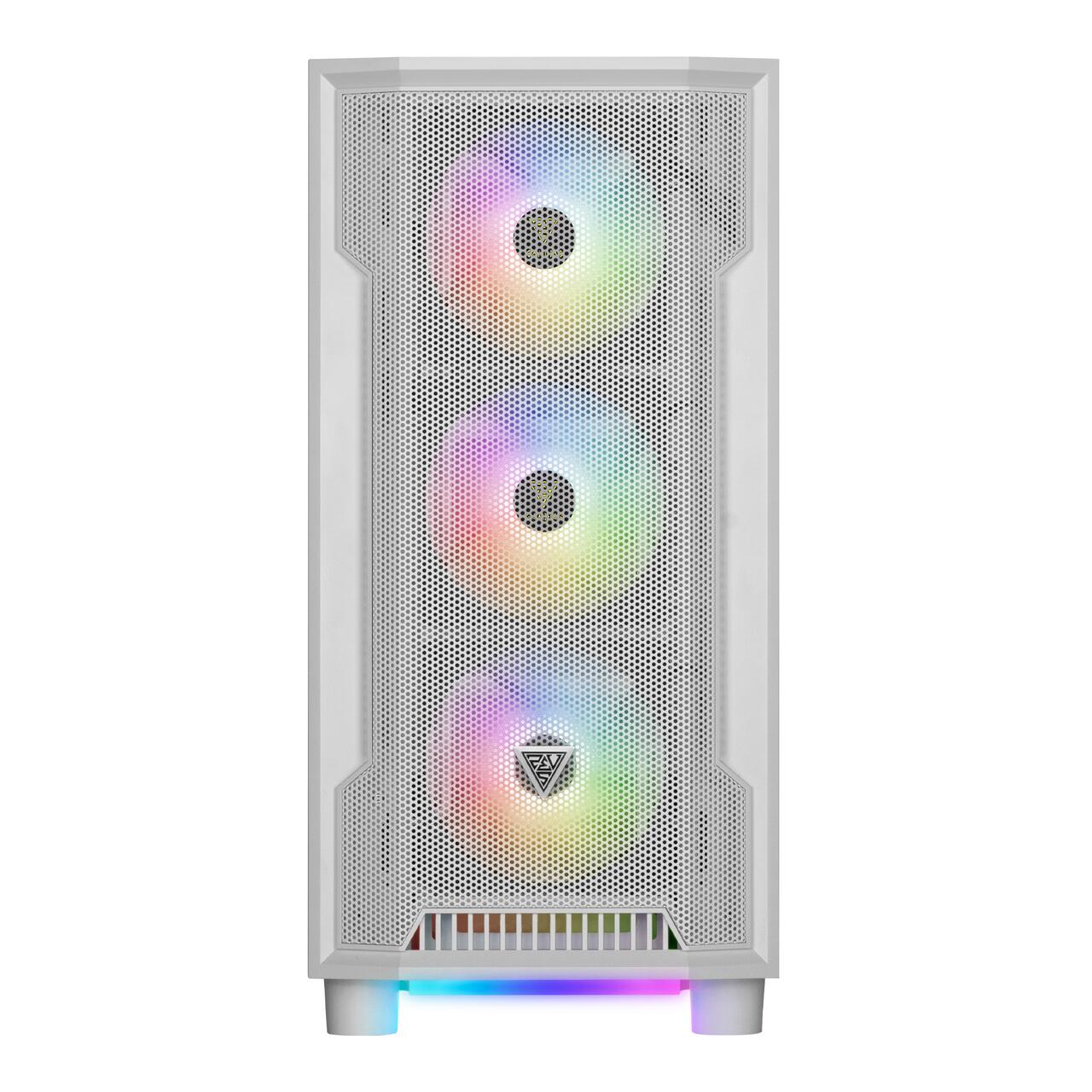 Carcasa Gamdias Athena M6 Lite alba iluminare aRGB, SPCC & ABS & Tempered glass, Mid Tower Case, interior vopsit alb, 2x 3.5" sau 1x 2.5"+1x 3.5"(HDD Cage), 2x 2.5” (intern), fata – 3x 120mm aRGB LED Fans (inclus) / 2x 140mm fan (optional), spate – 1x 120mm aRGB LED Fans (inclus), tavan – 2x 120mm / 2x 140mm fans (optional), 1x USB 3.0, 2x USB 2.0, HD Audio, ATX/Micro-ATX/Mini-ITX, sloturi expansiune: x7, design premium cu panou lateral din sticla securizata, iluminare aRGB sub podeaua carcasei, inaltime maxima cooler procesor: 190mm, lungime maxima placa video: 340mm, lungime maxima sursa: 180mm, suport radiatoare water cooling: fata – radiator 360mm, spate – radiator 120mm, tavan – radiator 240mm, dimensiuni ((LxWxH): 410x230x477mm, greutate: 5.89kg