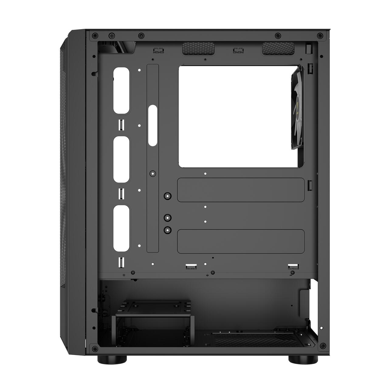 Carcasa Gamdias Aura GC6 aRGB neagra, SPCC & ABS & Tempered glass, Mid Tower Case, interior vopsit negru, 2 x 3.5" sau 1 x 2.5"+1 x 3.5"(HDD Cage), 1x 2.5” (intern), fata – 2x 120mm aRGB LED Fans (inclus) / 1x 120mm fan (optional), spate – 1x 120mm aRGB LED Fans (inclus), tavan – 2x 120mm fans (optional), 1x USB 3.0, 2x USB 2.0, HD Audio, ATX/Micro-ATX/Mini-ITX, design premium cu panou lateral din sticla securizata, sloturi expansiune: x7, inaltime maxima cooler procesor: 160mm, lungime maxima placa video: 300mm, lungime maxima sursa: 150mm, suport radiatoare water cooling: spate – radiator 120mm, fata – radiator 360mm, dimensiuni (LxWxH): 370x210x450mm, greutate: 4.7kg