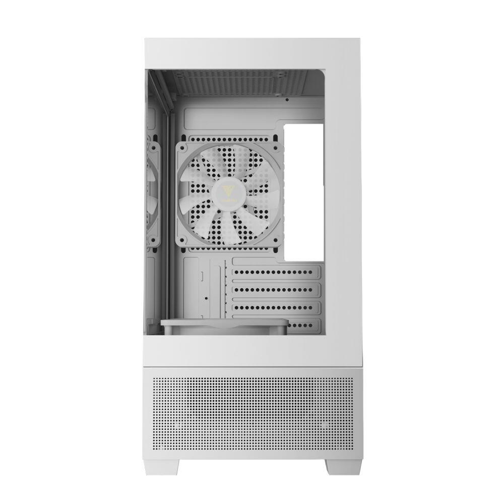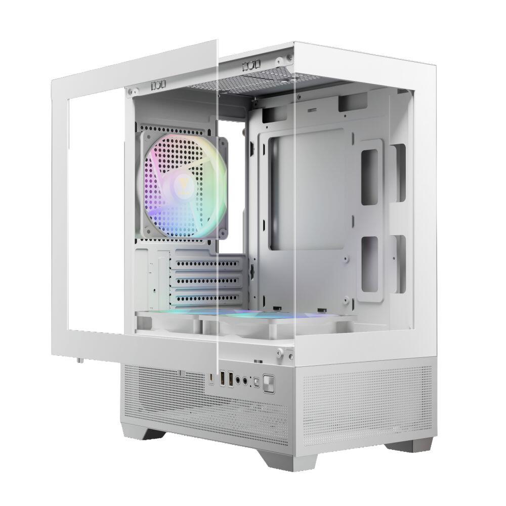 Carcasa Gamdias Aura GC9M Elite aRGB alba, SPCC & ABS & Tempered glass, Mid Tower Case, interior vopsit alb, 1 x 3.5" sau 1 x 2.5", spate – 1x 120mm aRGB LED Fans (inclus), tavan – 2x 120mm fans (optional), podea – 2x 120mm aRGB LED Fans (inclus), 1x USB Type-C, 2x USB 2.0, HD Audio, Micro-ATX/Mini-ITX, design premium panoramic din sticla securizata, sloturi expansiune: x4, inaltime maxima cooler procesor: 155mm, lungime maxima placa video: 280mm, lungime maxima sursa: 150mm, suport radiatoare water cooling: tavan – 1x 280mm (lungime maxima radiator 278mm), spate – 1x 120mm, dimensiuni (LxWxH): 280x195x380mm, greutate: 3.07kg