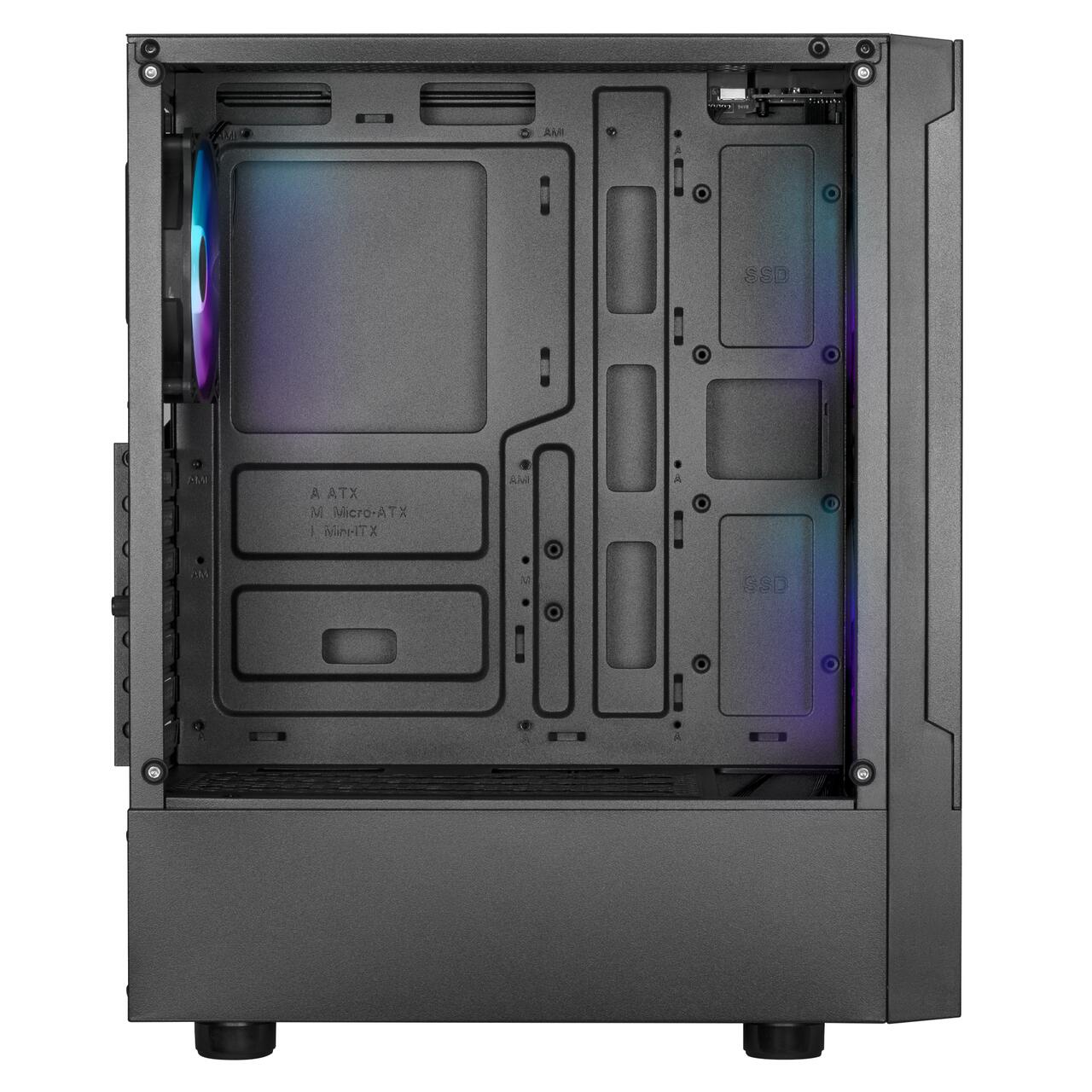 Carcasa Gamdias Talos E3 Mesh neagra, SPCC & ABS & Tempered glass, ATX Mid Tower Case, interior vopsit negru, 2x3.5” sau 1x2.5” si 1x3.5” (intern) / 2x 2.5” (intern), fata – 2x 120mm aRGB LED fans (inclus) / 2x 140mm (optional), spate – 1x 120mm aRGB LED fans (inclus), tavan – 2x 120mm fans (optional), 1x USB 3.0, 2x USB 2.0, HD Audio, ATX/Micro-ATX/Mini-ITX, sloturi expansiune: x7, design premium cu panou lateral din sticla securizata si panou frontal tip fagure cu gauri de 5mm, sincronizare RGB 5V (3pin) compatibila cu anumite placi de baza ASUS / MSI /ASROCK / GIGABYTE, inaltime maxima cooler procesor: 160mm, lungime maxima placa video: 300mm, suport radiatoare water cooling: fata – 280/360(fara cusca HDD)mm, tavan – 1x 240mm, spate – radiator 120mm, dimensiuni (LxWxH): 363x210x447mm, greutate: 4.72kg