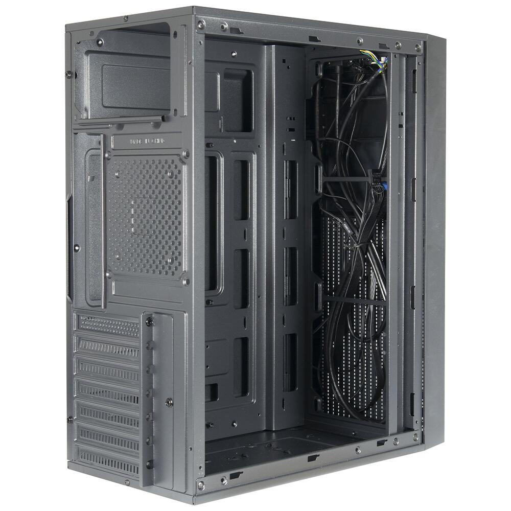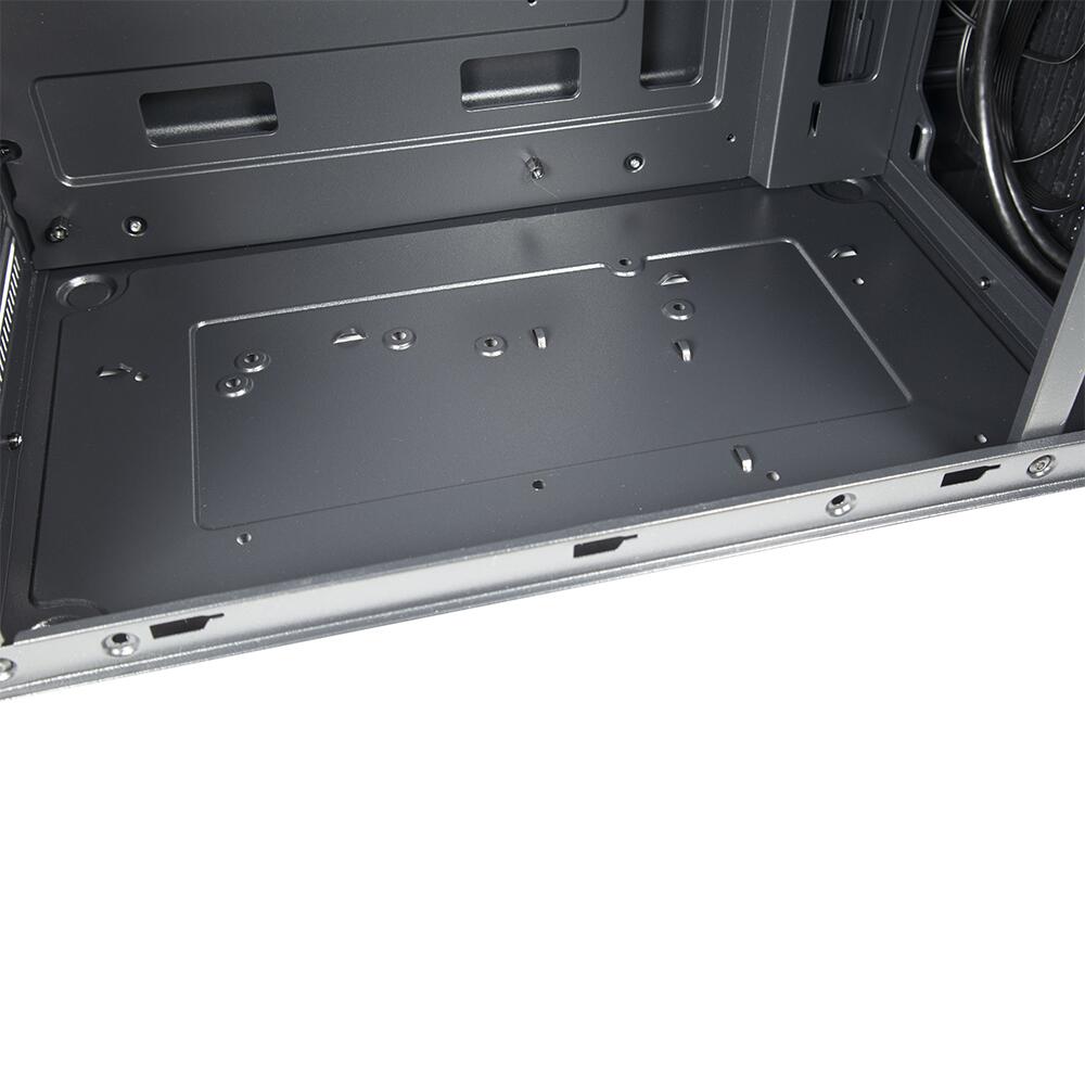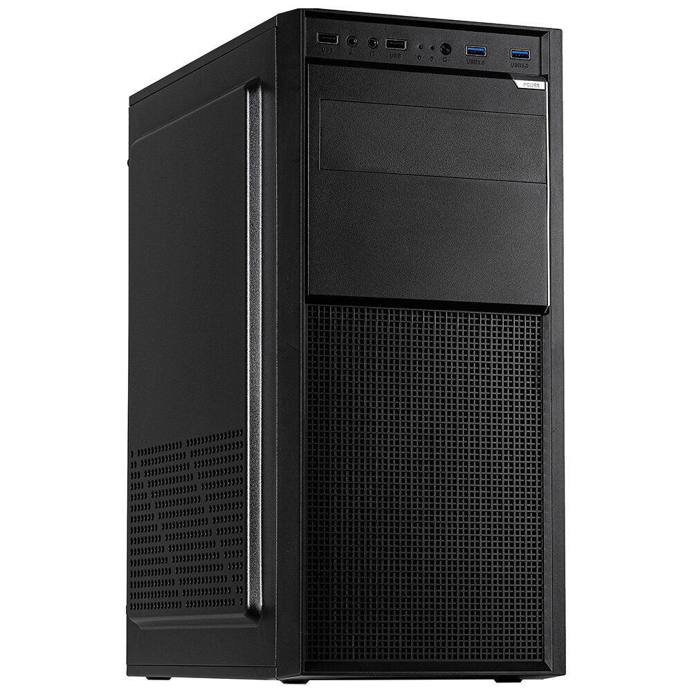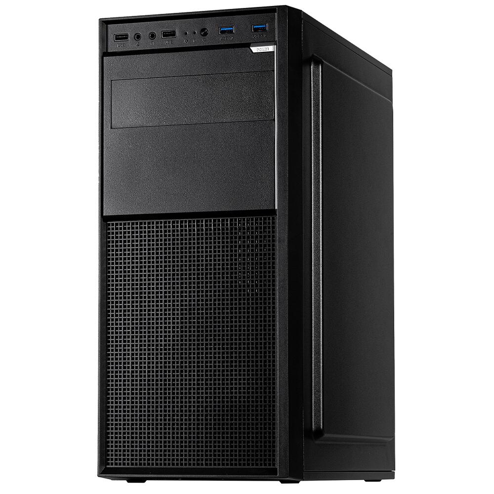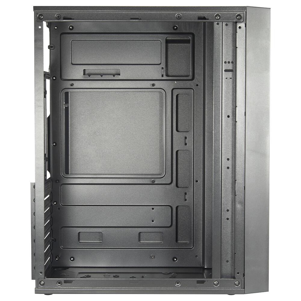 Carcasa Inter-Tech A-301 Quad neagra, SECC Steel ATX Mid Tower Case, fara sursa (tip ATX, montata sus), interior vopsit negru, 1x5.25” (extern, suporta unitati de maxim 170mm lungime), 1x3.5” sau 1x 2.5” (intern), fata – 3x 120mm fans (optional), spate – 1x 80mm fan (optional), 2x USB 3.2 Gen1, 2x USB 2.0, HD Audio, Mini-ITX, Micro-ATX, ATX (max. 305 mm × 244 mm, 12″ × 9,6″), sloturi expansiune: x7, inaltime maxima cooler procesor: 145mm, lungime maxima placa video: 240mm, dimensiuni (WxDxH): 195x345x415mm, greutate: 2.1Kg
