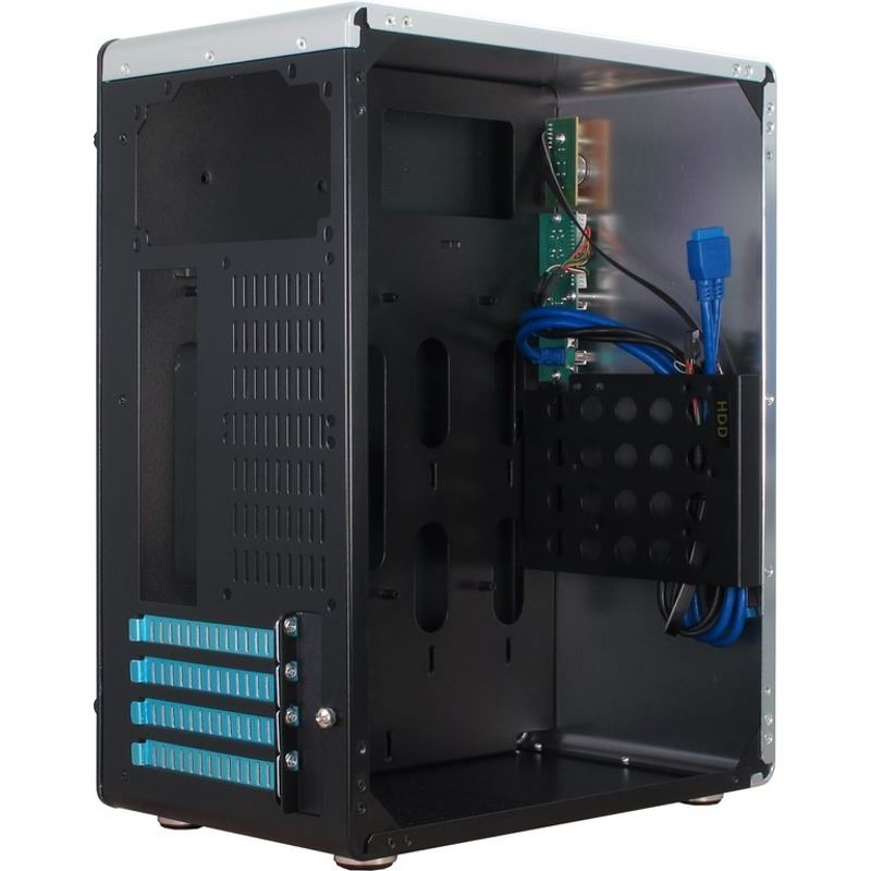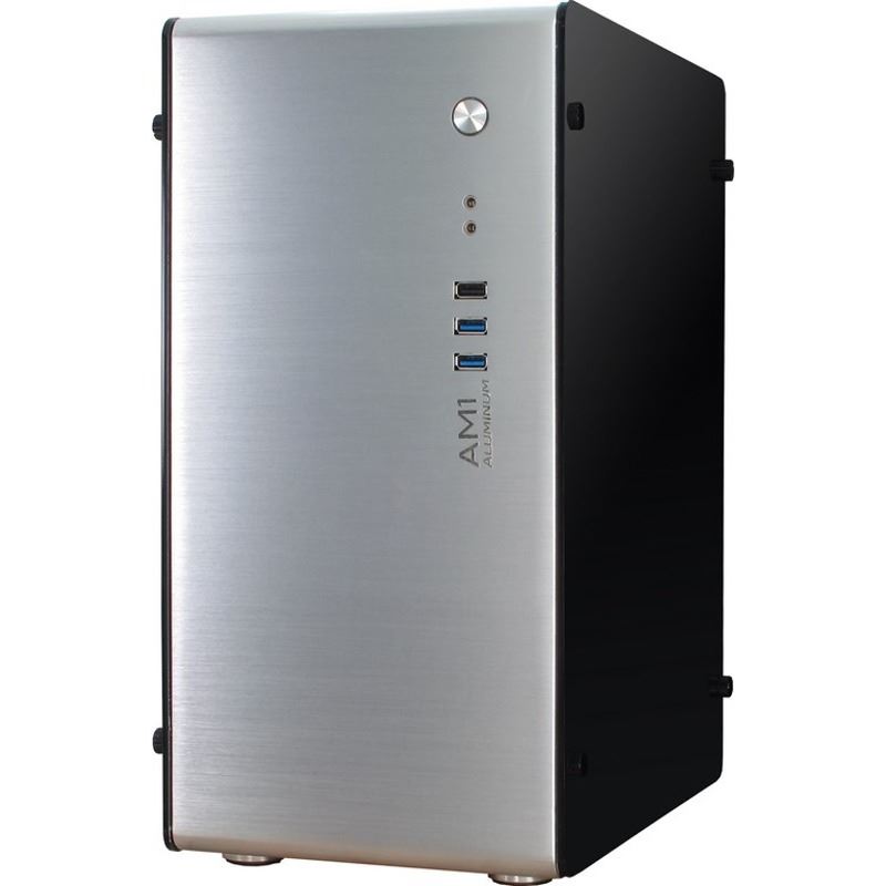 Inter-Tech AM-1 Aluminium, Aluminium microATX Mini Tower Case, fara sursa (tip ATX, montata sus), interior vopsit negru, 2x3.5”/2.5” (intern), 4x2.5” (intern), spate – 2x 80mm fans (optional), podea – 1x 120mm fan (optional), 2x USB 3.0, 1x USB 2.0, HD Audio, microATX / Mini-ITX, sloturi expansiune: x4, dimensiuni (h/w/d): 390 x 190 x 315mm, greutate: 3.53kg