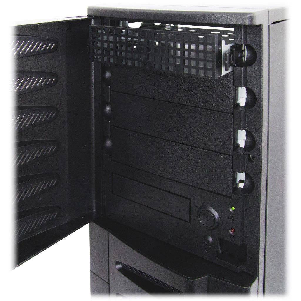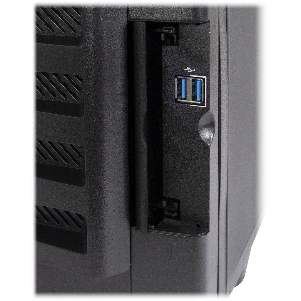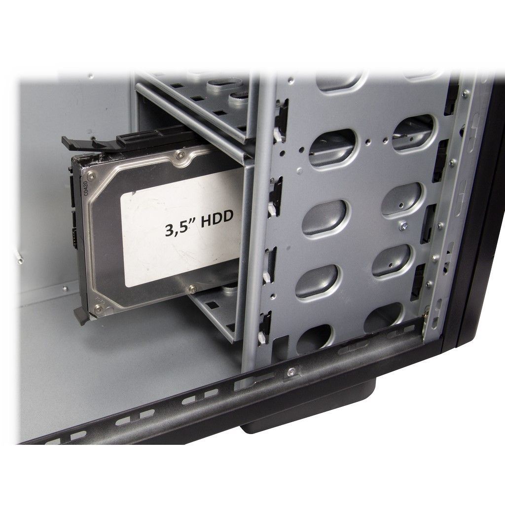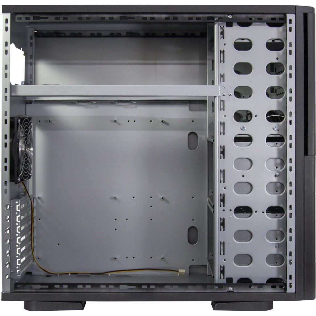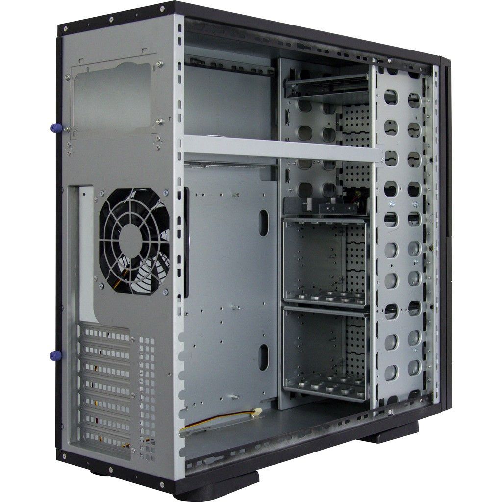 Carcasa Inter-Tech FH-9009 neagra tip storage, fara sursa (montata sus, tip ATX, se pot monta optional si sursele: 99997230 si 99997001 ), 4x 5.25” (extern), 1x3.5” (extern), 11x 3.5” (intern), 4x2.5” (intern), fata – 2x 80mm fans (optional), spate – 1x 120mm fans (inclus), material: otel 1.0mm, 2x USB 3.0 (se conecteaza la portul USB 2.0 al placii de baza), dimensiuni (h/w/d): 540 x 205 x 550mm, compatibilitate placi de baza: Mini ITX, μATX, ATX, eATX, dimensiuni maxime: 305 x 330mm), panoul frontal se poate incuia