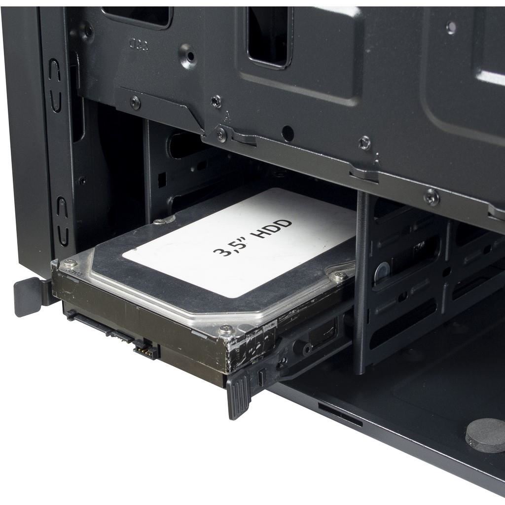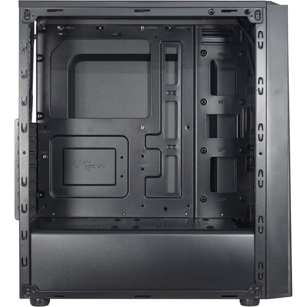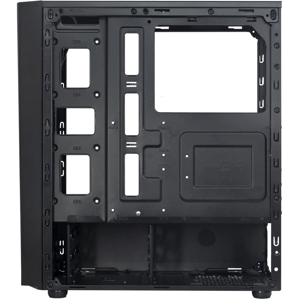 Carcasa Inter-Tech T-Eleven neagra, SECC Steel ATX Mid Tower Case, fara sursa (tip ATX, montata sus), 2x 3.5” (intern), 2x2.5” (intern), fata – 3x 120mm fans (optional), spate – 1x 120mm fan (optional), tavan – 2x 120mm fan (optional), podea – 2x 120mm fan (optional), 1x USB 3.0, 2x USB 2.0, HD Audio, ATX / microATX, sloturi expansiune: x7, design premium cu panou lateral din plexiglass, inaltime maxima cooler procesor: 165mm, lungima maxima placa video: 305mm, dimensiuni (h/w/d): 425x200x390mm, greutate: 2.93kg