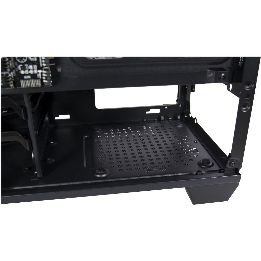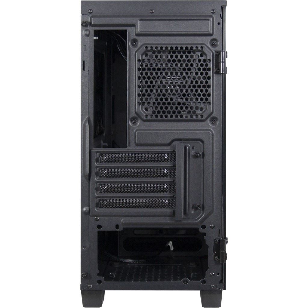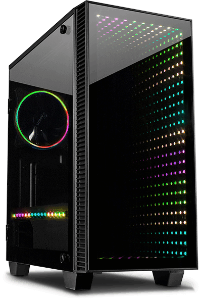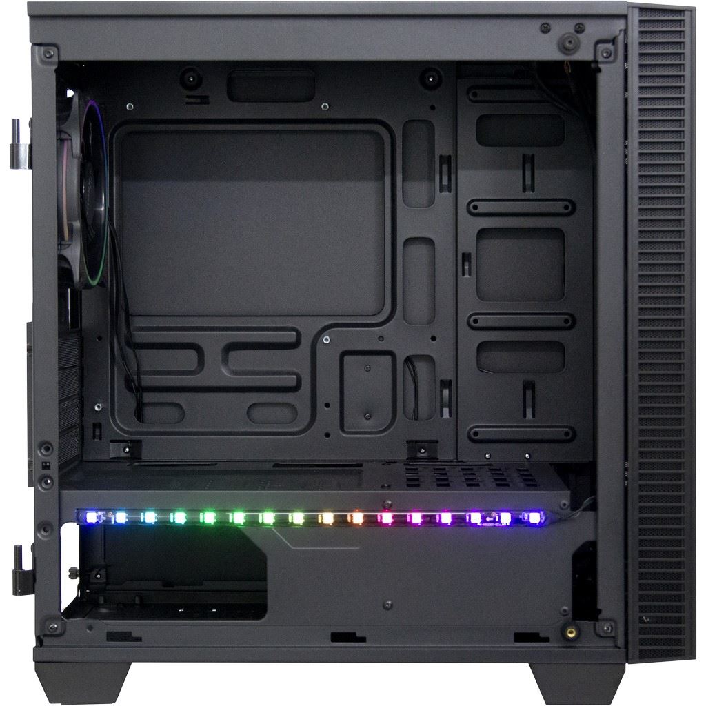 Carcasa Inter-Tech X-608 Infinity neagra, SPCC Steel microATX Mid Tower, fara sursa (tip ATX, montata jos), interior vopsit negru, 2x3.5” (intern), 5x2.5” (intern), design tool-less, fata – 3x 120mm fan (optional), spate – 1x 120mm aRGB fan (inclus), tavan – 2x 120mm fan (optional), include o banda de LED aRGB montata pe power cover, 1x USB 3.0, 1x USB 3.0 Type-C, HD Audio, microATX / Mini-ITX, inlcude filtru de praf, design premium cu panou lateral din sticla securizata si panou frontal cu iluminare RGB cu efect infinity mirror, sincronizare cu placile de baza compatibile Asus AuraSync, Gigabyte RGB Fusion, MSI Mystic Light Sync si Asrock RGB LED prin header ARGB (adressable RGB), sloturi expansiune: x7, inaltime maxima cooler procesor: 150mm, lungime maxima placa video: 320mm, dimensiuni (h/w/d): 415x195x405mm, greutate: 5.84kg