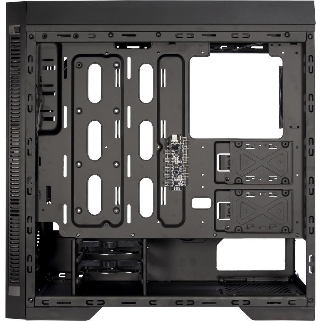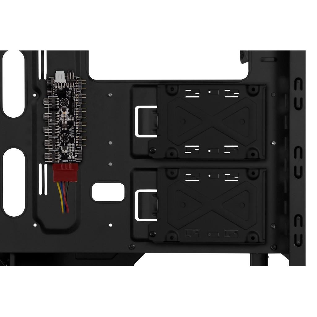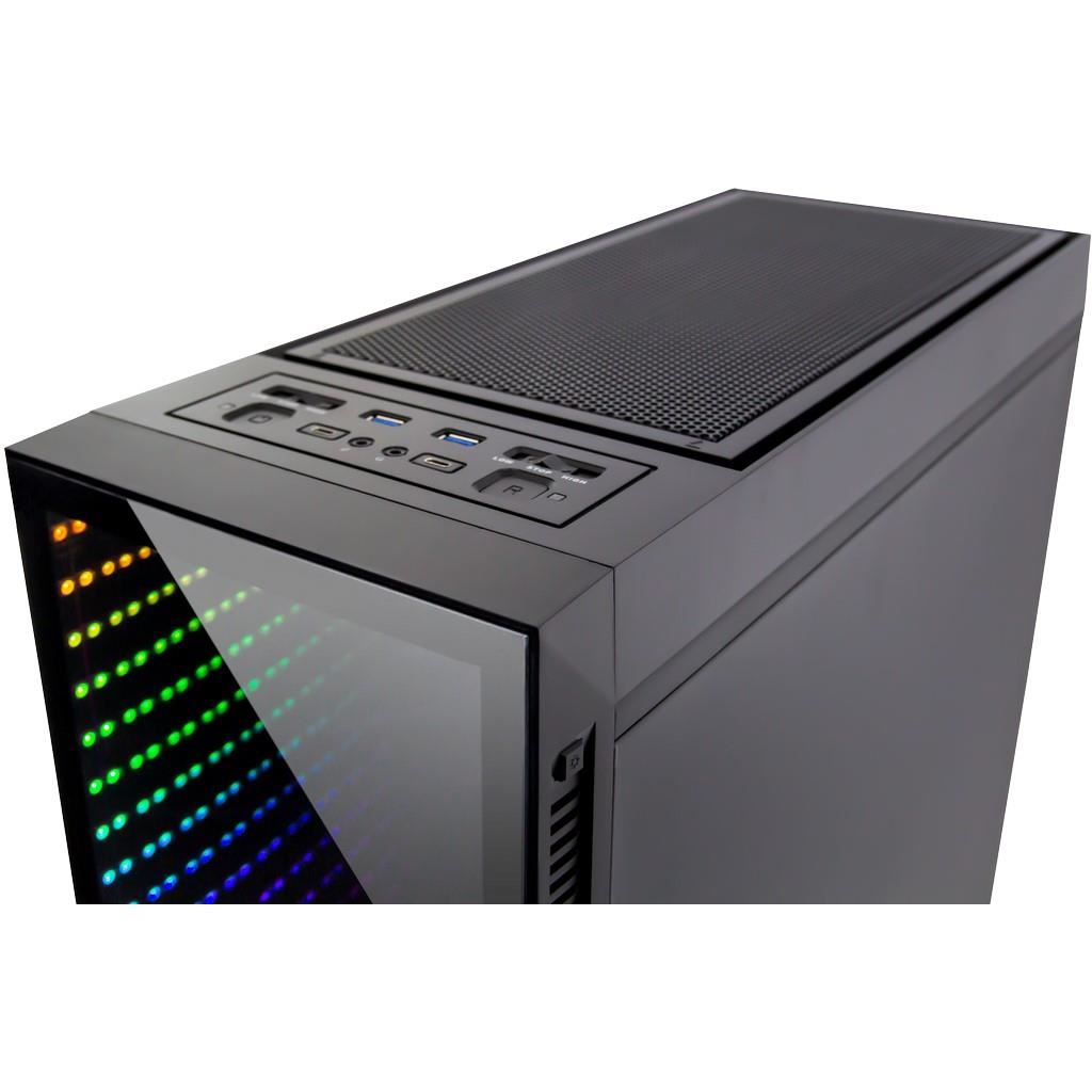 Carcasa Inter-Tech X-908 Infini2 neagra, SPCC Steel ATX Mid Tower, fara sursa (tip ATX, montata jos), interior vopsit negru, 2x3.5” (intern), 3x2.5” (intern), design tool-less, fata – 3x 120mm fan (optional), spate – 1x 120mm RGB fan (inclus), tavan – 2x 120mm RGB fan (inclus) / 1x 120mm (optional) 2x USB 3.0, x USB 3.0 Type-C, HD Audio, EATX / ATX / microATX / Mini-ITX, inlcude filtru de praf, design premium cu panou lateral din sticla securizata si panou frontal cu iluminare RGB cu efect infinity mirror, sincronizare cu placile de baza compatibile Asus AuraSync, Gigabyte RGB Fusion, MSI Mystic Light Sync si Asrock RGB LED prin header ARGB (adressable RGB), sloturi expansiune: x7, inaltime maxima cooler procesor: 165mm, lungime maxima placa video: 455mm, dimensiuni (h/w/d): 526x210x515mm
