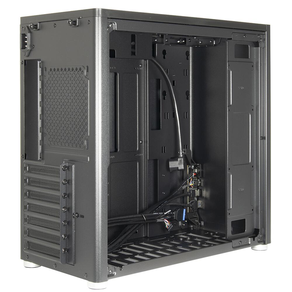 Carcasa Inter-Tech X2 Duplex PRO neagra, SECC Steel ATX Mid Tower Case, fara sursa (tip ATX, montata sus), interior vopsit negru, 1x3.5” sau 1x 2.5” (intern), 3x 2.5” (intern), spate – 1x 120mm fan (optional), tavan - 2x 120mm fans (optional), 1x USB 3.2 Gen2, 1x USB Type-C 3.2 Gen2, HD Audio, Mini-ITX, Micro-ATX, ATX (max. 305 mm × 244 mm, 12″ × 9,6″), sloturi expansiune: x7, inaltime maxima cooler procesor: 165mm, lungime maxima placa video: 370mm, dimensiuni (WxDxH): 205x405x400mm, greutate: 5.2Kg