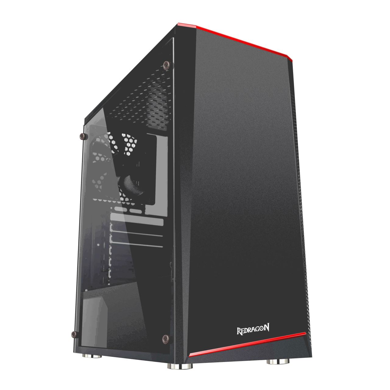 Carcasa Redragon Ratchet neagra, SECC Steel ATX Mid Tower, fara sursa (tip ATX, montata jos), interior vopsit negru, 2x3.5” (intern), 2x2.5” (intern), design tool-less, fata – 3x 120mm fans (optional), spate – 1x 120mm fan (inclus), podea – 2x 120mm fans (optional), 1x USB 3.0, 1x USB 2.0, HD Audio, ATX / microATX, design premium cu panou lateral din plexiglass si frontal cu iluminare RGB, sloturi expansiune: x7, inaltime maxima cooler procesor: 155mm, lungime maxima placa video: 325mm, dimensiuni (HxWxD): 417x183x340mm, greutate: 4.5kg