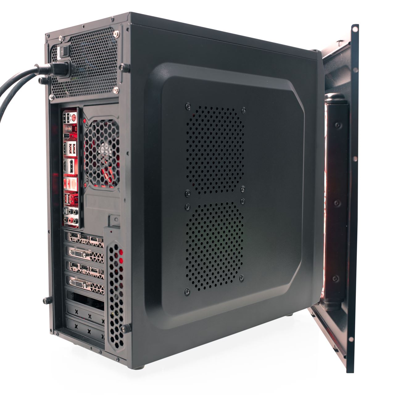 Carcasa Riotoro CR100BE B2B neagra, SPCC Steel ATX Mini Tower, fara sursa (tip ATX, montata sus), interior vopsit negru, 2x 5.25” (extern), 2x 3.5" (intern), 2x 2.5" (intern), fata - 1x 80/120mm fans (optional), spate - 1x 80/90mm fan (optional), lateral – 2x 120mm fans (optional), 1x USB 3.0, 2x USB 2.0, HD Audio, ATX / Mini-ITX, sloturi expansiune: x7, inaltime maxima cooler procesor: 160mm, lungime maxima placa video: 350mm, suport radiatoare water cooling: lateral – 1x 120mm, greutate 5.8kg