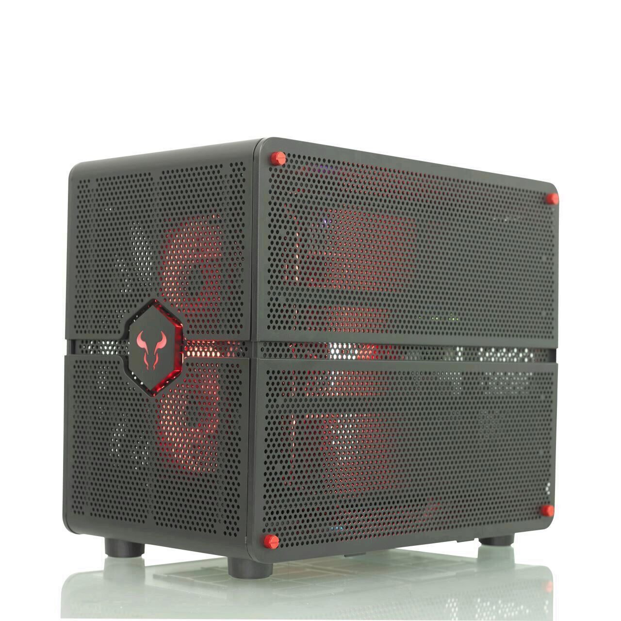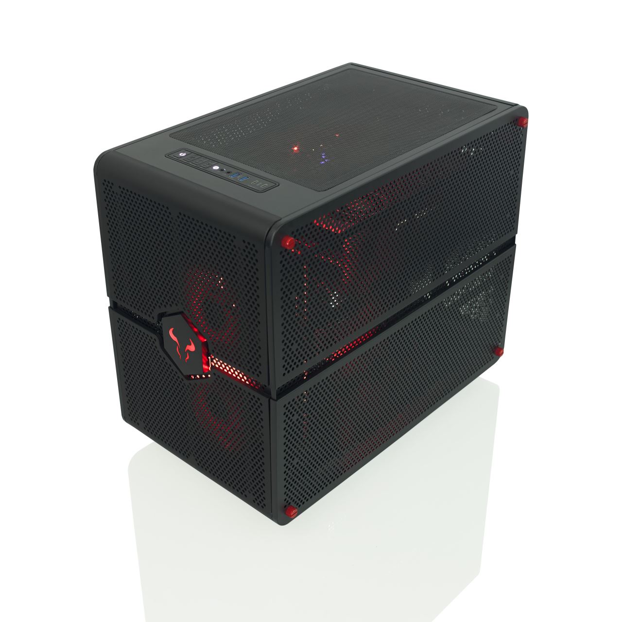 Carcasa Riotoro Morpheus convertibila neagra, SPCC Steel ATX Full Tower, fara sursa (tip ATX, montata jos), interior vopsit negru, 2x 3.5" (intern), 4x 2.5" (intern), fata - 2x 140mm RED LED fan (inclus) / 2x 120mm / 1x 200mm (optional), spate - 1x 80mm fan (inclus), tavan – 2x 120/140mm (optional), podea – 2x 120/140mm (optional), echipata cu filtre de praf, 2x USB 3.0, 2x USB Type-C, HD Audio, E-ATX / ATX / microATX / Mini-ITX, sloturi expansiune: maxim x8, inaltime maxima cooler procesor: 122mm, lungime maxima placa video: 300mm, suport radiatoare water cooling: fata – 1x 120/240mm, podea – 1x 120/240mm, tavan – 1x 120/240mm, dimensiuni: 465x276x445mm sau 465x276x385mm, greutate: 13kg