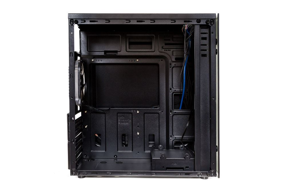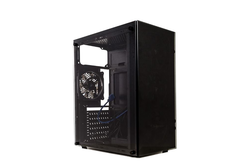 Segotep And 8 Black Case, SPCC Steel ATX Mid Tower, fara sursa (montata sus), interior vopsit negru, 2x 2.5”(intern), 2x 3.5” (intern), spate – 1x 120mm Blue LED Fan (inclus), fata – 3x 120mm Blue LED Fan (inclus), 1x USB3.0, 2x USB 2.0, HD Audio, ATX / Micr ATX, design premium cu panou lateral si fata din sticla securizata, sloturi expansiune: x7, inaltime maxima cooler procesor: 155mm, lungima maxima placa video: 310mm, dimensiuni (WxHxD): 188x369x422mm