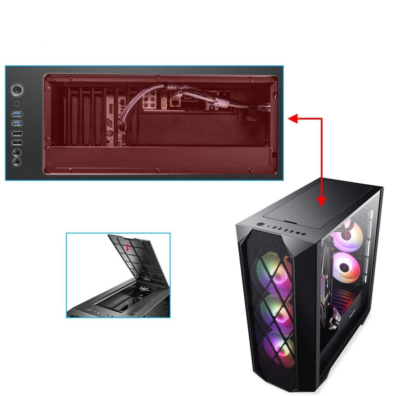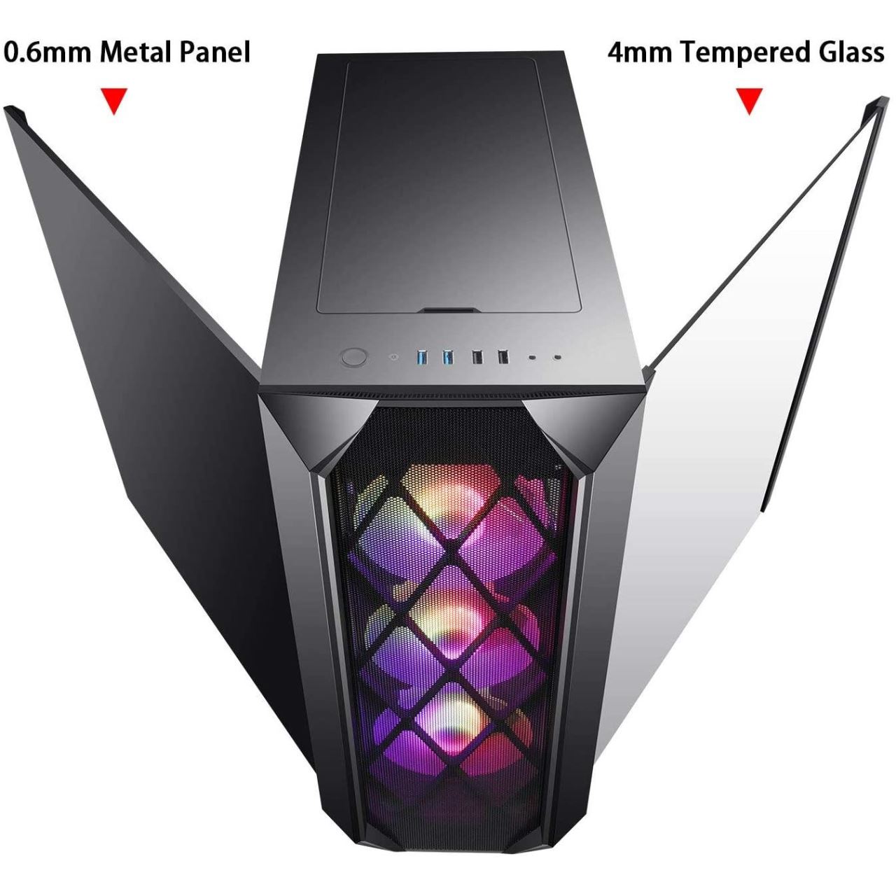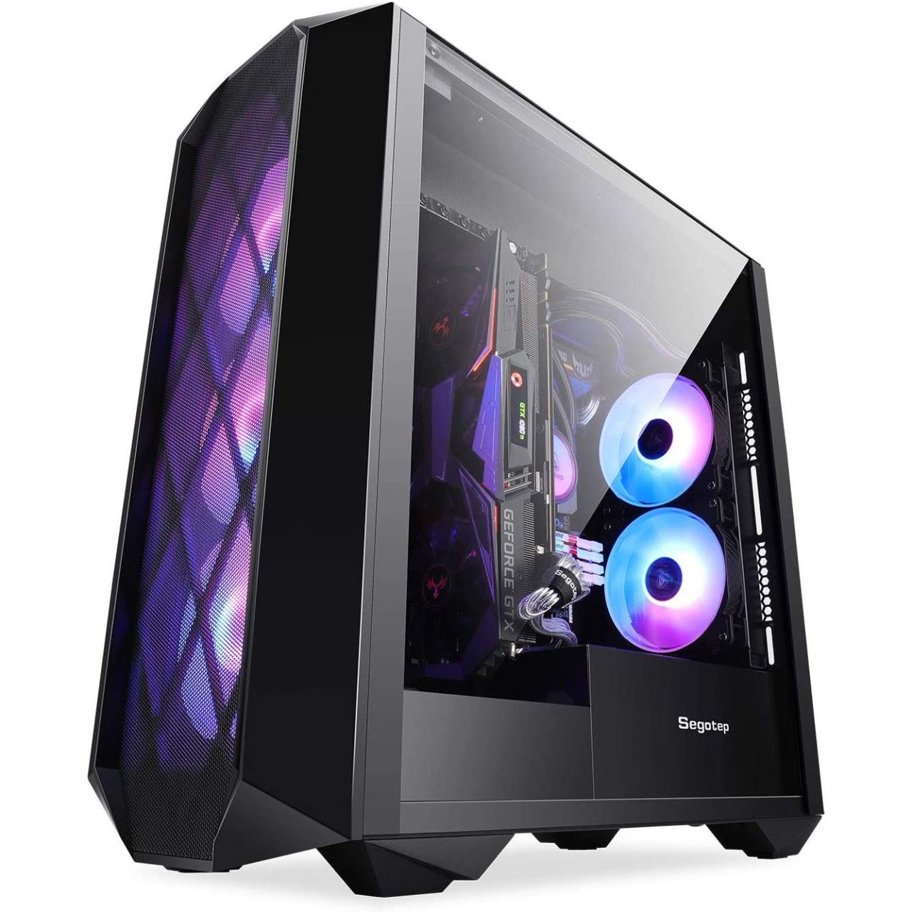 Carcasa Segotep Argus neagra, SPCC Steel ATX 3.0 Mid Tower, placa de baza se monteaza cu conectorii in partea de sus a carcasei, conectorii au un spatiu de wire management situat sub capacul de pe tavan permitand un acces facil, fara sursa (tip ATX, montata jos), interior vopsit negru, 2x 3.5" (intern), 2x 2.5" (intern), fata – 3x 120mm fans (optional) / 2x 140mm (optional), spate - 2x 120/140mm fan (optional), design premium cu panou lateral din sticla securizata, panoul frontal din mesh metalic, 2x USB 3.0, 2x USB 2.0, HD Audio, ATX / microATX / Mini-ITX, sloturi expansiune: x7, inaltime maxima cooler procesor: 167mm, lungime maxima placa video: 285mm primul slot sau 323mm al doilea slot, dimensiuni: 470x215x483mm, greutate: 7.95kg