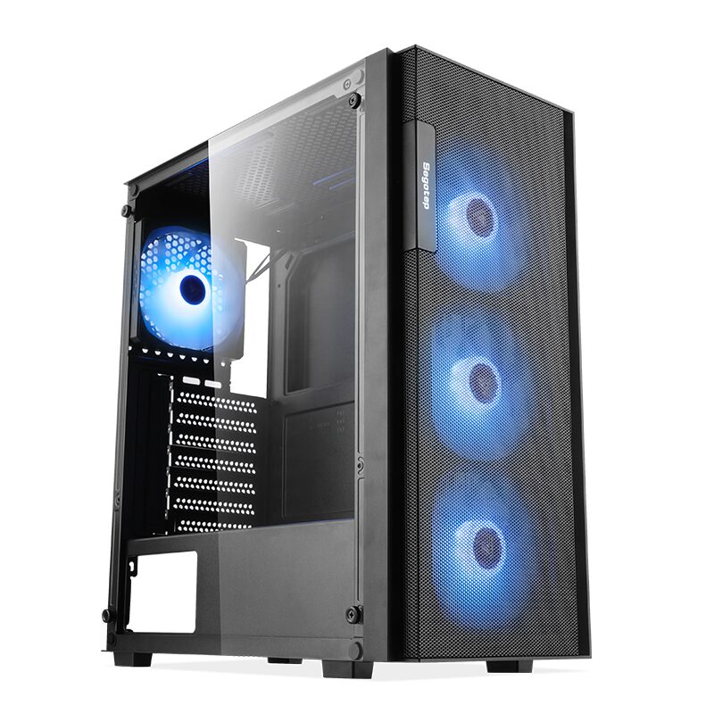 Carcasa Segotep Axe 5 neagra, SECC Steel Micro ATX Mini Tower, fara sursa (tip ATX, montata jos), interior vopsit negru, 1x 3.5" (intern), 1x 2.5”/3.5” (intern), 2x 2.5" (intern), fata - 3x 120mm fan (optional), spate - 1x 120mm fan (optional), tavan - 2x 120/140mm fans (optional), podea – 2x 120mm fan (optional), filtru de praf amovibil pentru sursa si tavan, 1x USB 3.0, 2x USB 2.0, HD Audio, panou lateral din sticla securizata, sloturi expansiune: x5, placi de baza suportate M-ATX / M-ITX, inaltima maxima cooler procesor: 158mm, lungime maxima placa video: 340mm (fara ventilatoare montate in partea frontala) sau 315mm (cu ventilatoare montate in partea frontala), suport radiatoare watercooling: tavan – 1x 240/280mm, dimensiuni: 395x195x446mm