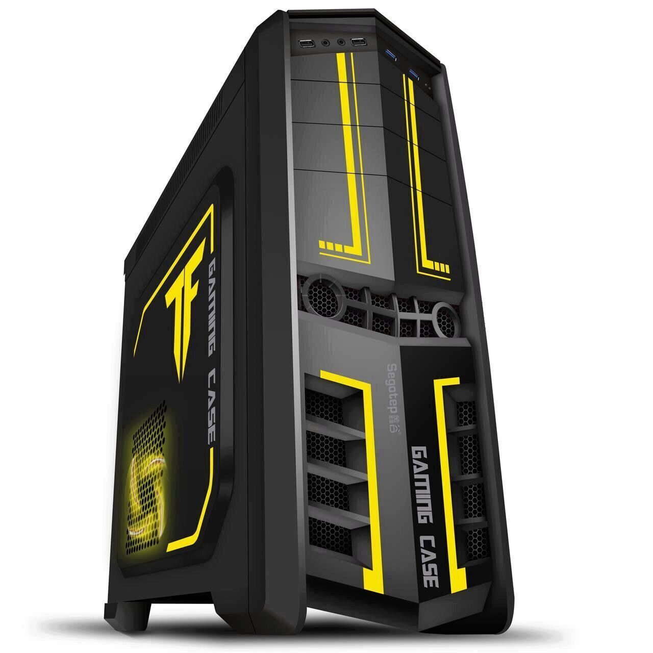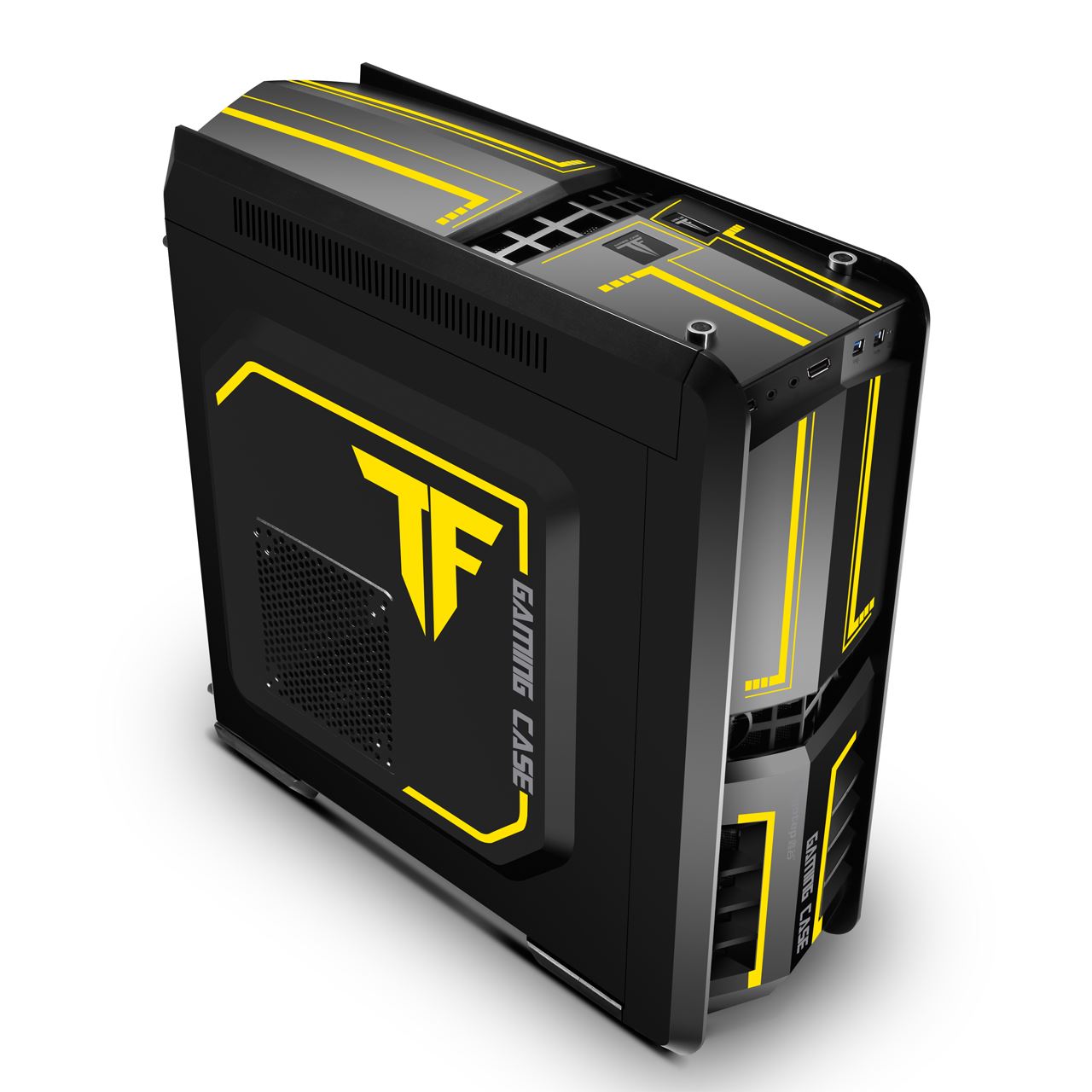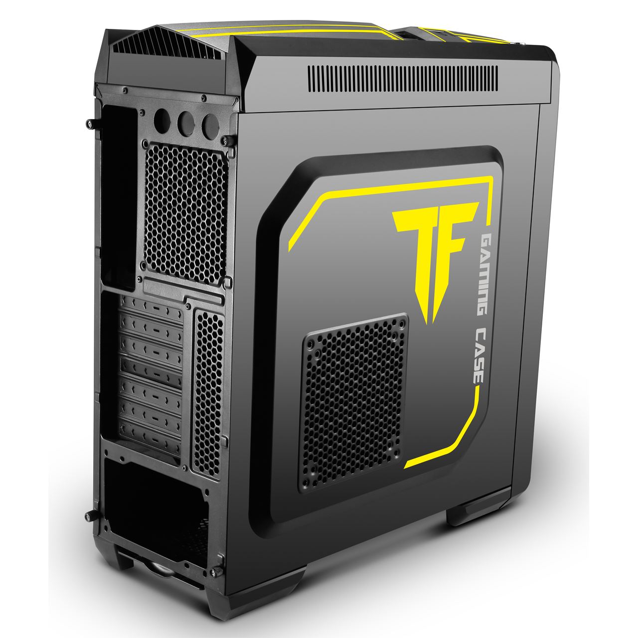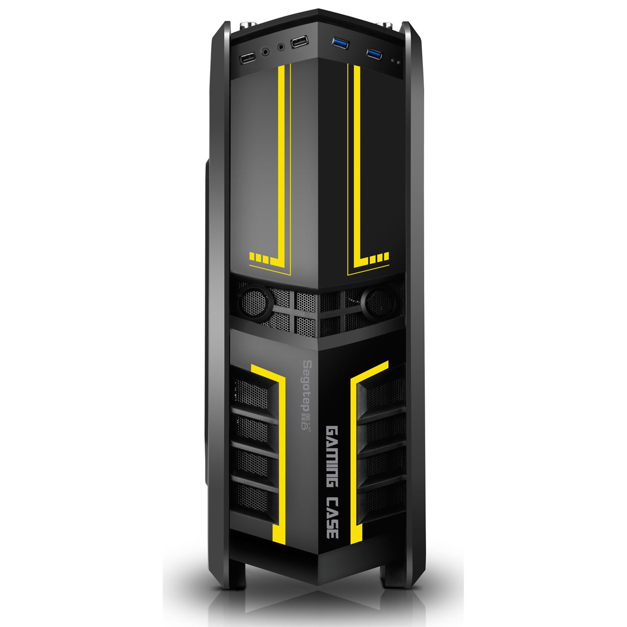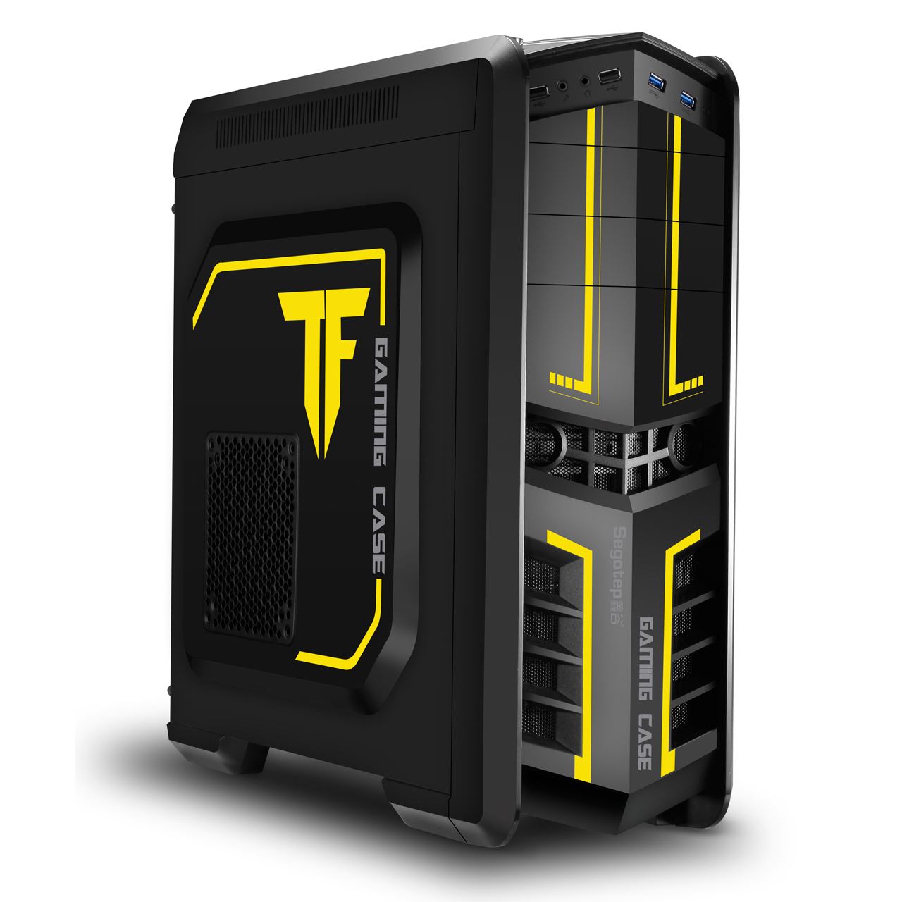 Segotep Chariot TF, SPCC Steel ATX Mid Tower, fara sursa, interior vopsit negru, 3x5.25” (extern), 4x3.5” (intern), 2x2.5” (intern), design tool-less, fata – 1x 120mm fan (inclus), spate – 1x 120mm fan (inclus), tavan – 1x 120mm fan (inclus) si 1x 120mm fan (optional) lateral – 1x 140/120mm fan (optional), 1x USB 3.0, 2x USB 2.0, HD Audio, ATX / microATX, sloturi expansiune: x7, inaltime maxima cooler procesor: 160mm, lungime maxima placa video: 370mm, dimensiuni: 475 x 200 x 505mm