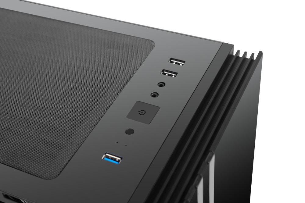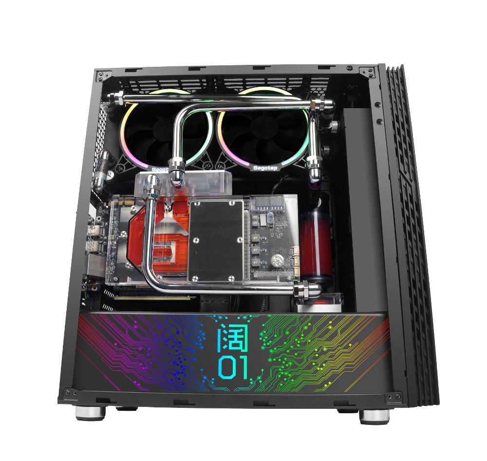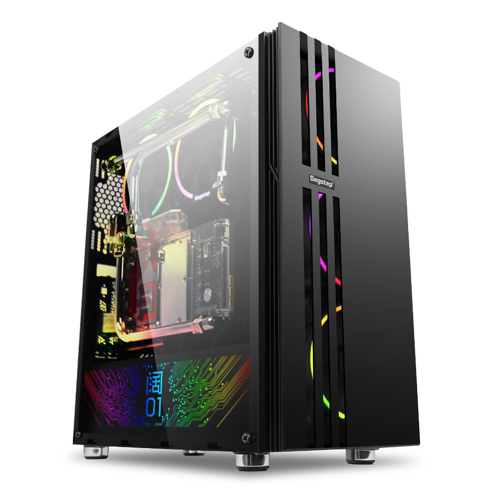 Carcasa Segotep Fenix neagra, SPCC Steel ATX Mid Tower, fara sursa (tip ATX, montata jos), interior vopsit negru, 2x 3.5" (intern), 2x 2.5" (intern), fata - 3x 120mm LED RGB fan (inclus) / 2x 140mm (optional), spate - 1x 120/140mm fan (optional), design premium cu panou lateral din sticla securizata, include RGB controller (pentru 8 ventilatoare si 2 benzi LED), 1x USB 3.0, 2x USB 2.0, HD Audio, ATX / microATX / Mini-ITX, sloturi expansiune: x7+2, inaltime maxima cooler procesor: 175mm, lungime maxima placa video: 265mm montata pe placa de baza sau 360mm montat vertical, dimensiuni: 470x220x450mm