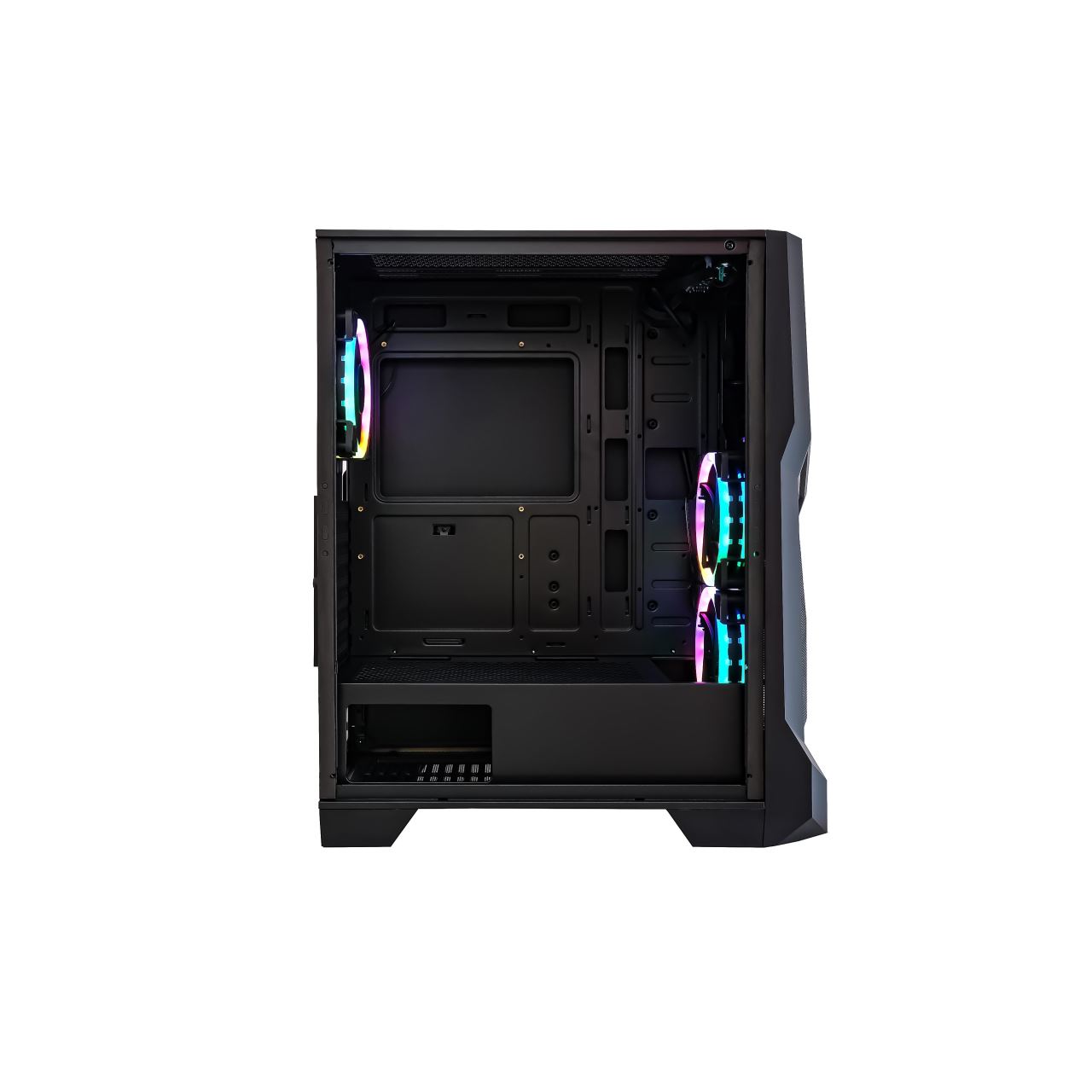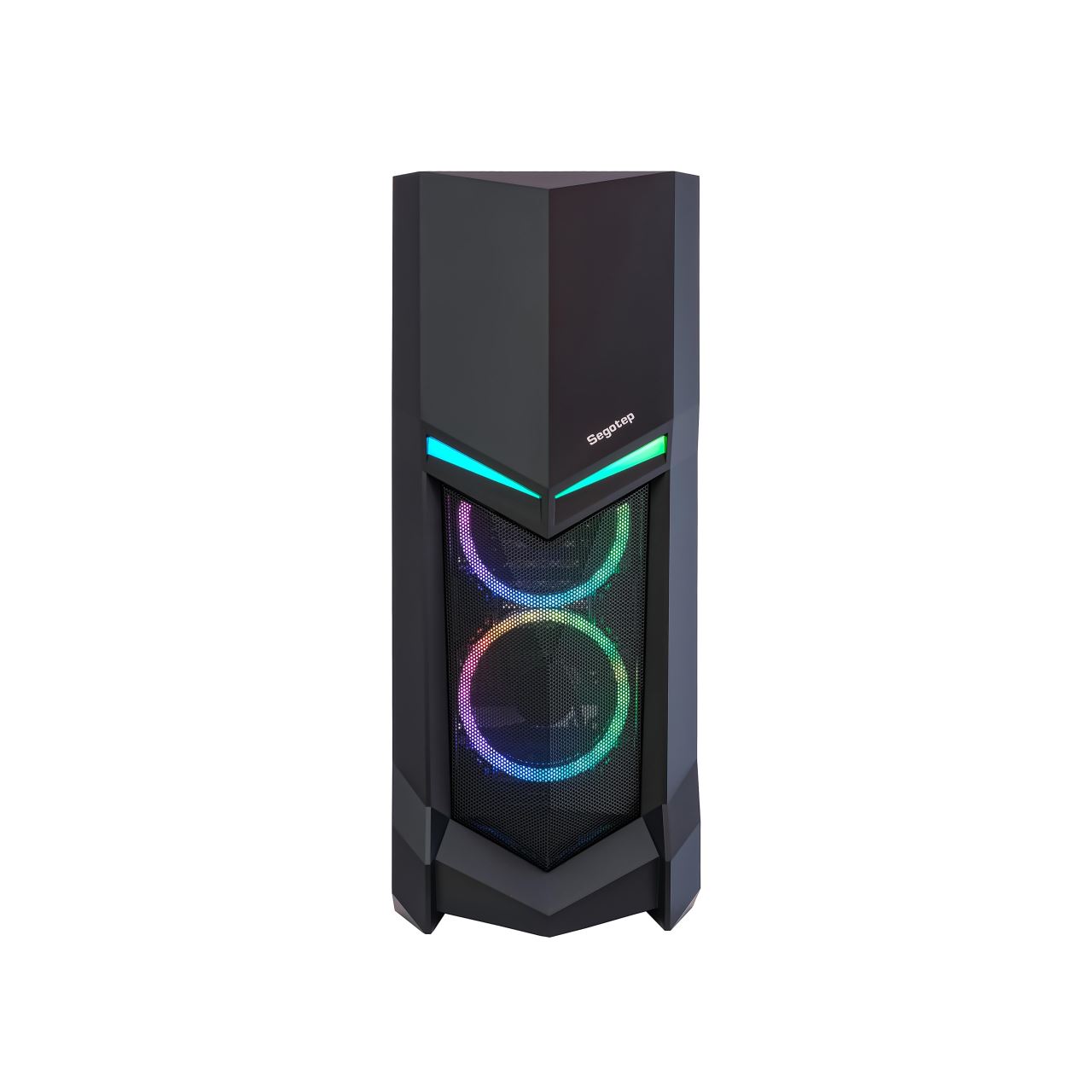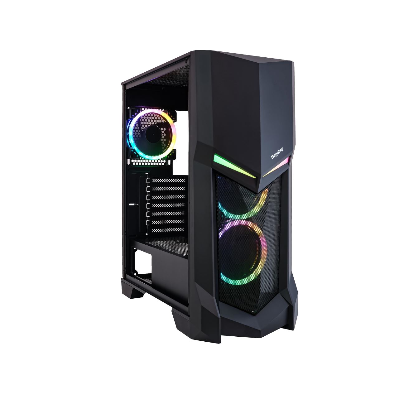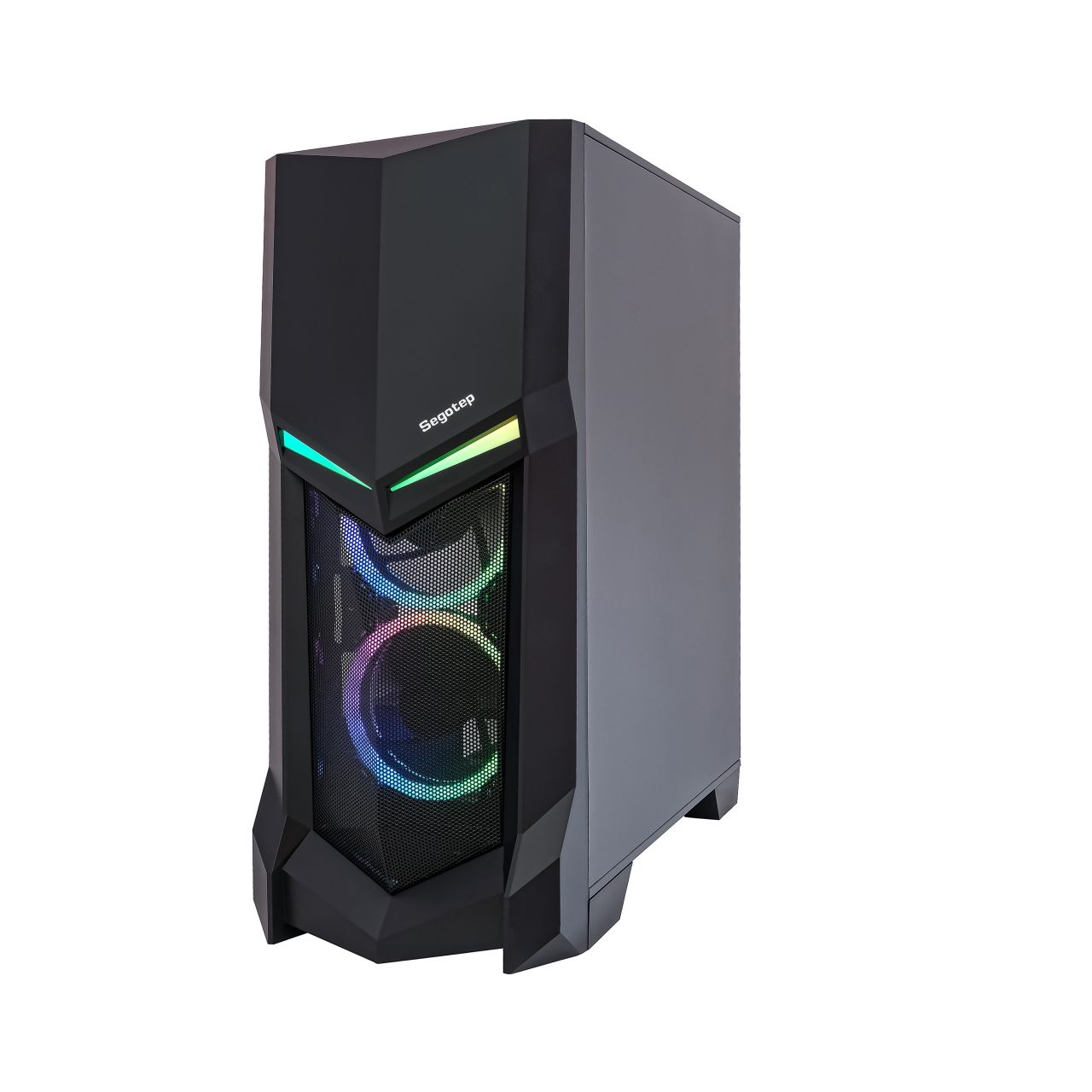 Carcasa Segotep Gank 3 neagra, SPCC Steel ATX Mid Tower, fara sursa (tip ATX, montata jos), interior vopsit negru, 2x 3.5" (intern) sau 1x 2.5” (intern), fata – 2x 120mm LED RGB fans (inclus) / 1x120mm / 3x140mm fans (optional), spate - 1x 120mm LED RGB fan (inclus), tavan – 2x 120mm fans (optional), podea – 2x 120mm fans (optional), design premium cu panou lateral din sticla securizata, 1x USB 3.0, 1x USB 2.0, HD Audio, ATX / microATX / Mini-ITX, sloturi expansiune: x7, inaltime maxima cooler procesor: 165mm, lungime maxima placa video: 330mm fara radiatoare montate pe panoul frontal, 300mm cu ventilatoare montate pe panoul frontal, dimensiuni(WxHxD): 215x493x426mm, greutate: 5.6kg