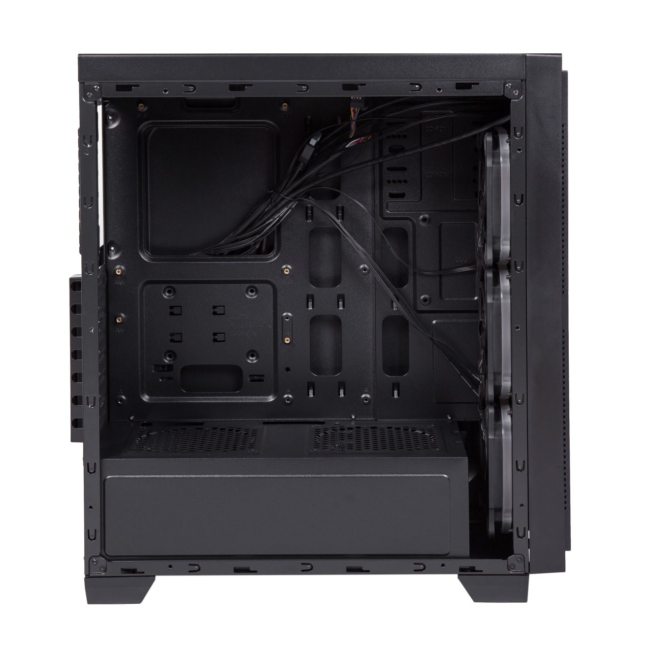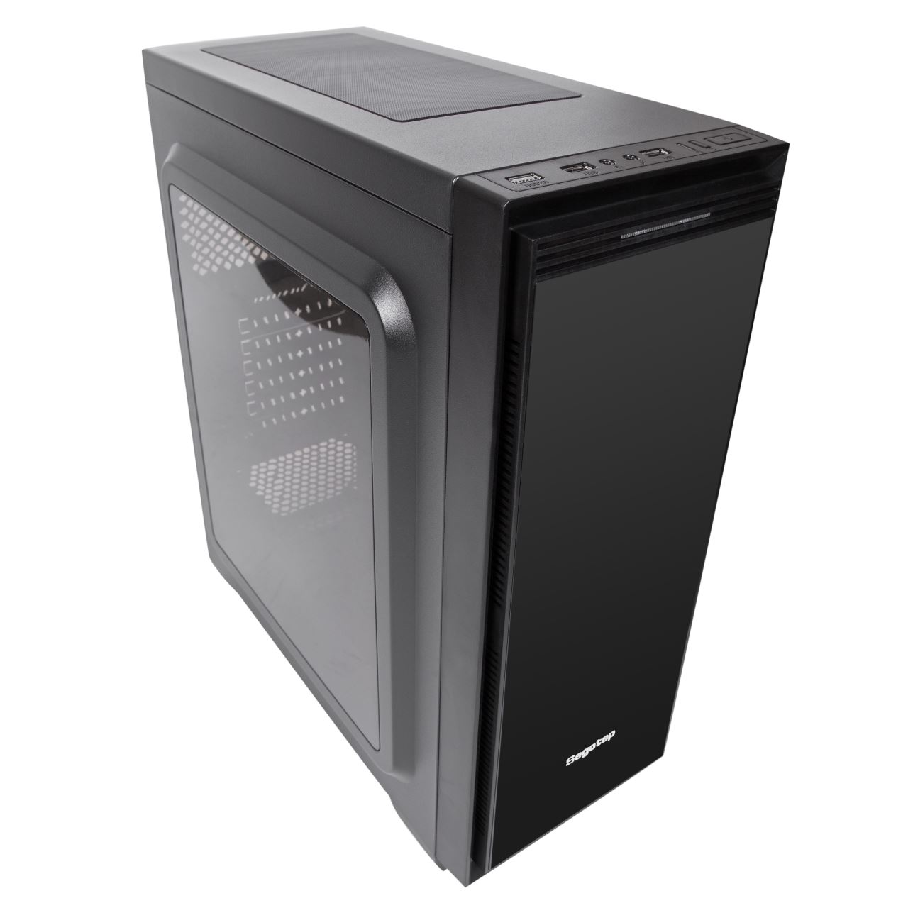 Carcasa Segotep Halo 6 neagra fara ventilatoare, SECC Steel ATX Mid Tower, fara sursa (tip ATX, montata jos), interior vopsit negru, 3x 3.5" (intern), 3x 2.5 (intern), fata - 3x 120mm fans (optional), spate - 1x 120mm fan (optional), tavan - 2x 120mm fans (optional), podea - 2x 120mm fans (optional), power cover pentru sursa, filtru de praf magnetic tavan, filtru sursa amovibil, 1x USB 3.0, 2x USB 2.0, HD Audio, sloturi expansiune: x7, inaltime maxima cooler procesor: 160mm, lungime maxima placa video: 340mm, dimensiuni: 375x185x454mm