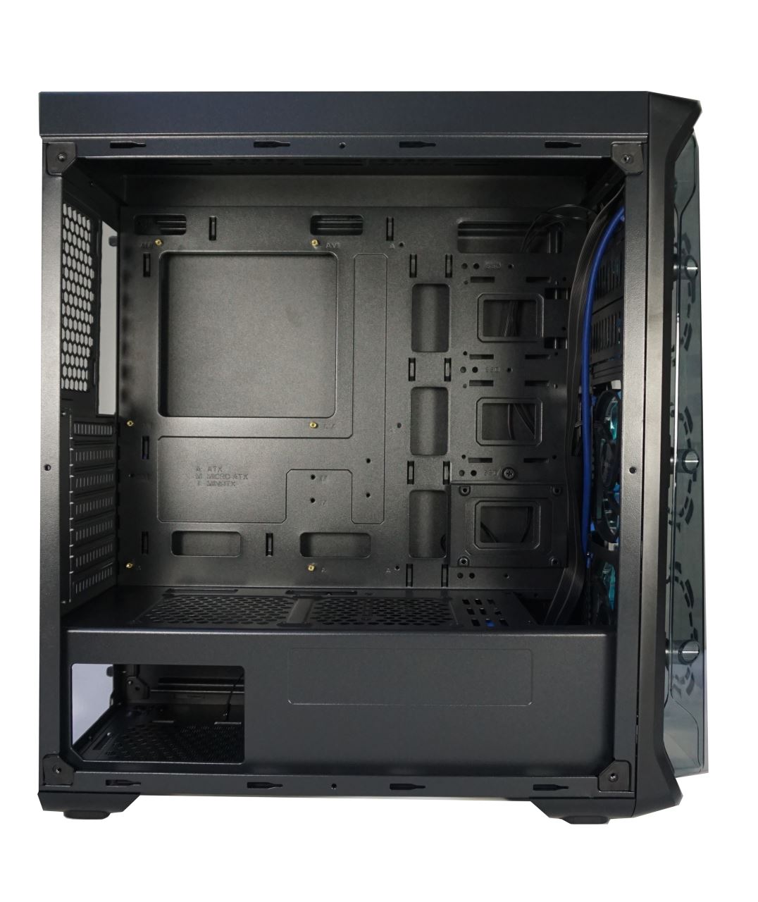 Segotep LUX II Black, SECC Steel ATX Mid Tower, fara sursa (tip ATX, montata jos), power cover, filtre de praf pentru tavan si sursa, interior vopsit negru, 2x3.5” (intern), 2x2.5” (intern), fata – 3x 120mm Polar Wind Blue LED fans (incluse), spate – 1x 120mm fan (optional), tavan – 2x 120/140mm fans (optional, pozitie ajustabila), power cover – 2x 120mm fans (optional), design premium cu panou lateral transparent in totalitate, 1x USB 3.0, 2x USB 2.0, HD Audio, ATX / microATX / Mini-ITX, sloturi expansiune: x7, inaltime maxima cooler procesor: 155mm, lungime maxima placa video: 380mm, suport radiatoare water cooling: tavan – 120/240mm, fata – 120/240mm, dimensiuni (h/w/d): 505 x 200 x 445mm