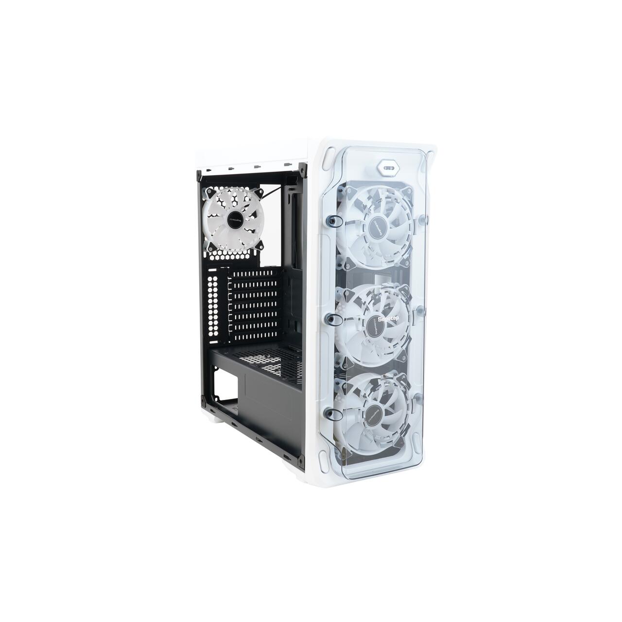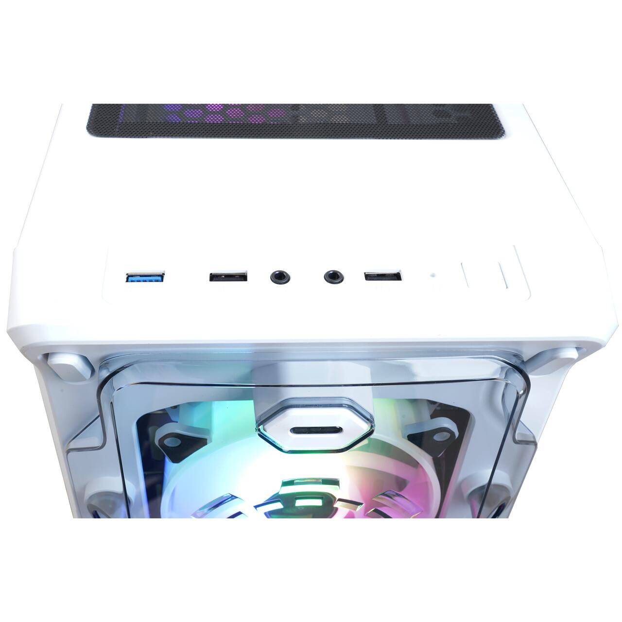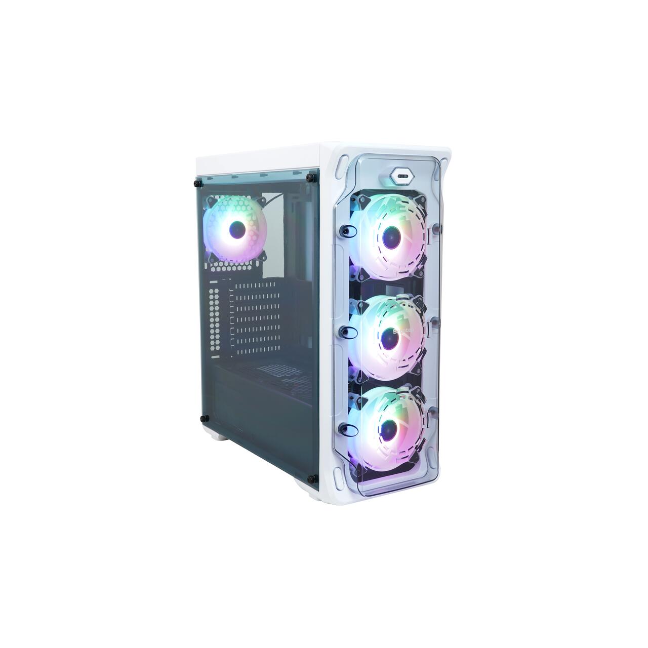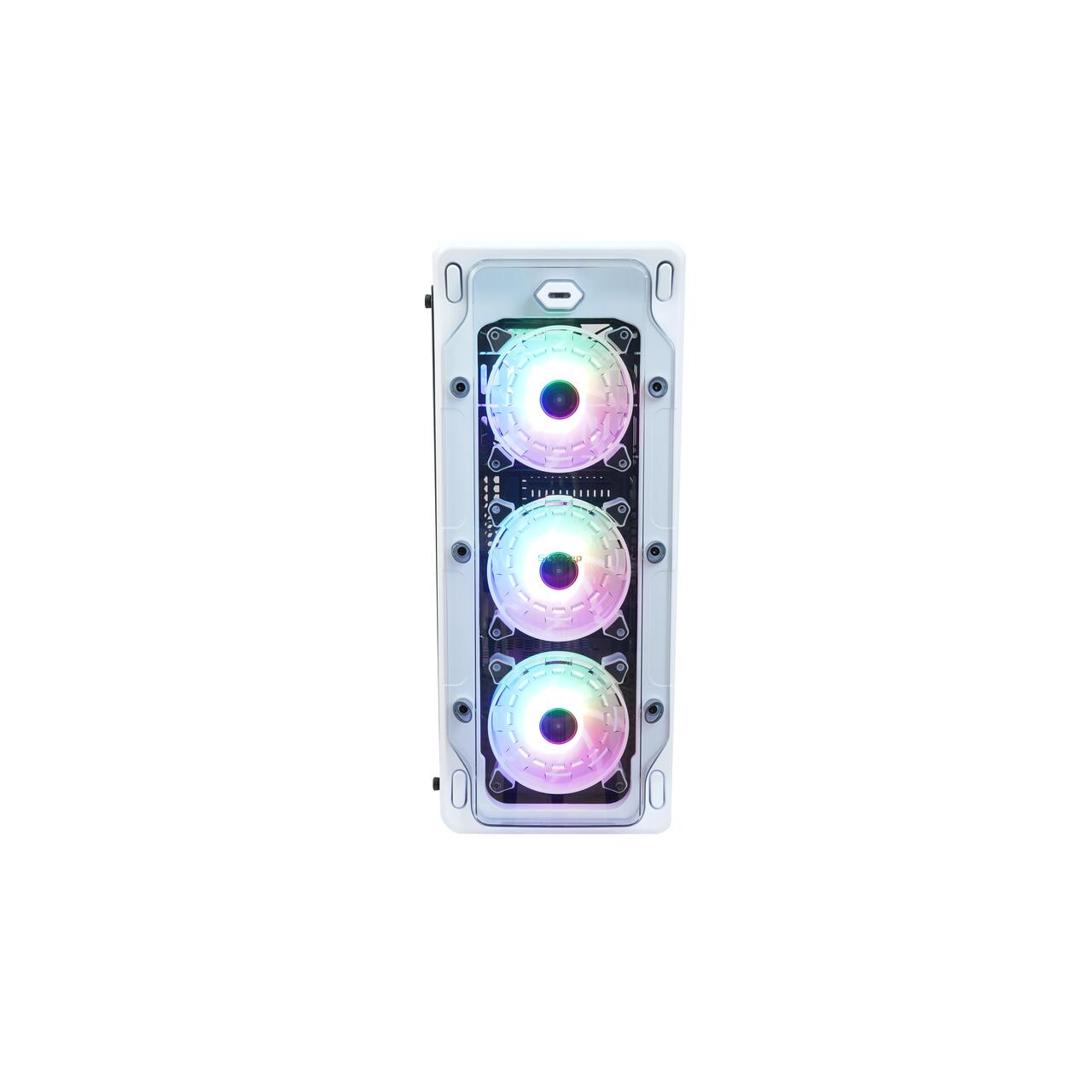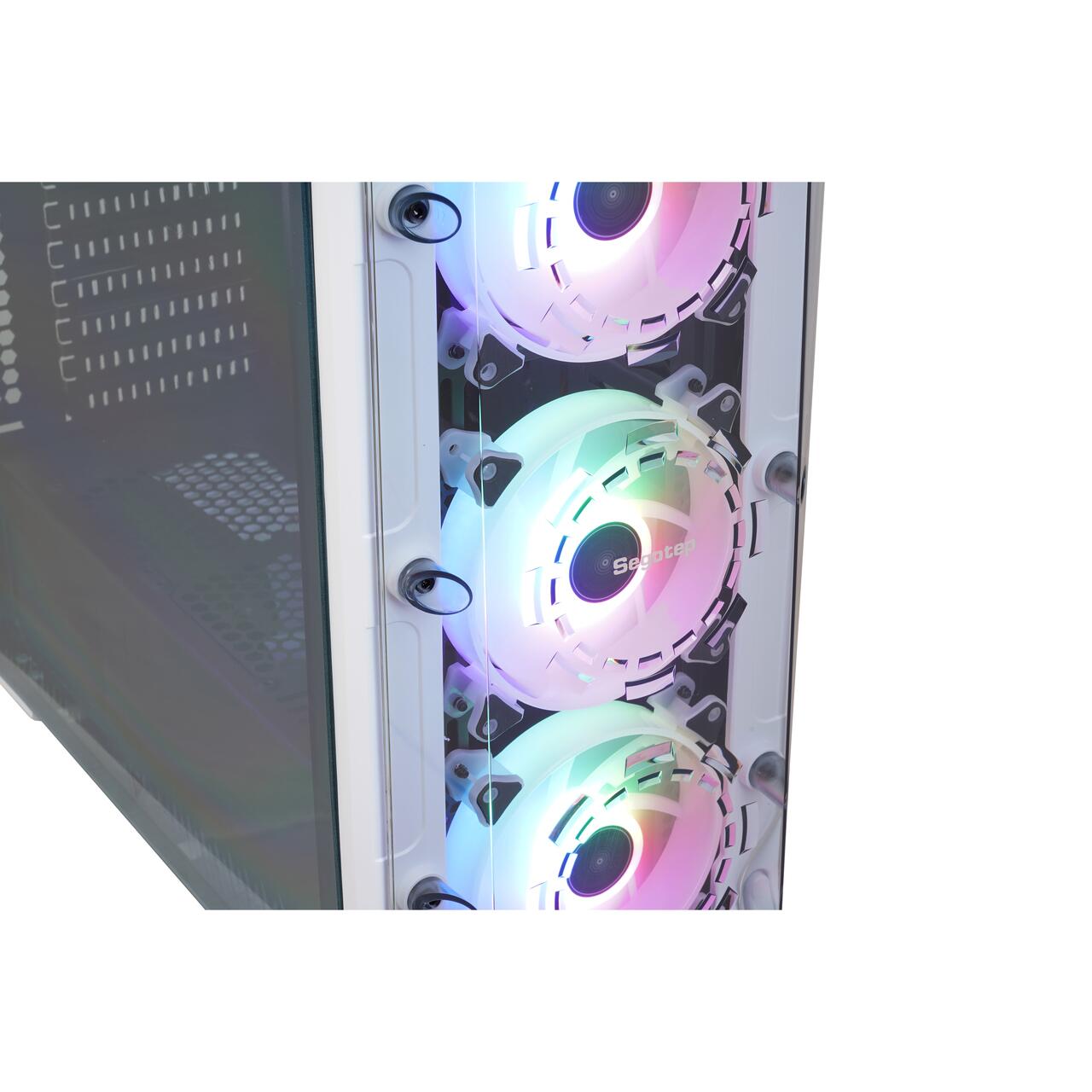 Carcasa Segotep Lux II RGB alba, SECC Steel ATX Mid Tower, fara sursa (tip ATX, montata jos), power cover, filtre de praf pentru tavan si sursa, interior vopsit negru, 2x 2.5”/3.5” (intern), 2x2.5” (intern), fata – 3x 120mm aRGB LED fans (incluse), spate – 1x 120mm aRGB LED fan (inclus) / 140mm fan (optional), tavan – 2x 120/140mm fans (optional, pozitie ajustabila), power cover – 2x 120mm fans (optional), design premium cu panou lateral din sticla securizata, 1x USB 3.0, 2x USB 2.0, HD Audio, E-ATX / ATX / microATX / Mini-ITX, sloturi expansiune: x7, inaltime maxima cooler procesor: 160mm, lungime maxima placa video: 360mm, suport radiatoare water cooling: tavan – 120/240mm, fata – 120/240mm, dimensiuni: 465 x 205 x 502mm