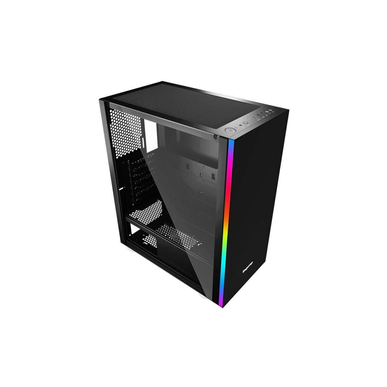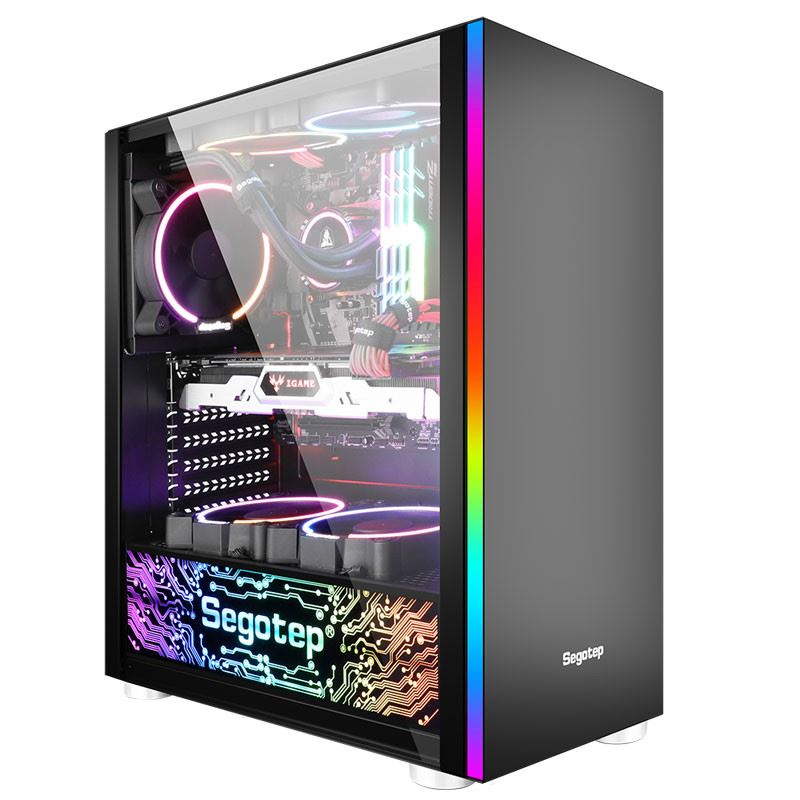 Segotep Mex Black Case, SPCC Steel ATX Mid Tower, fara sursa (tip ATX, montata jos), interior vopsit negru, 2x/2.5” (intern), 2x3.5”/2.5” (intern), design tool-less, fata – 3x 120mm(optionale, pozitie ajustabila), spate – 1x 120mm (optional), tavan – 2x 120mm fans (optional), 1x USB 3.0, 2x USB 2.0, HD Audio, ATX, microATX / Mini-ITX, sloturi expansiune: x7, inaltime maxima cooler procesor: 155mm, lungime maxima placa video: 310mm, lungime maxima sursa: 200mm, dimensiuni (h/w/d): 456 x 210 x 374mm