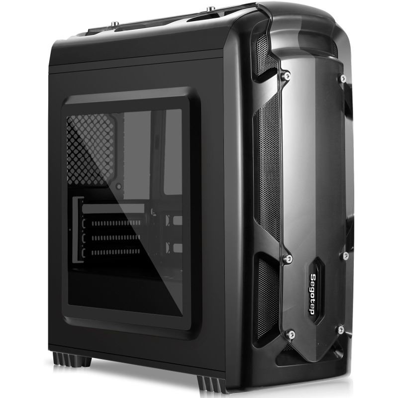 Segotep Polar Light Black, SPCC Steel ATX Mini Tower, fara sursa (tip ATX, montata jos), interior vopsit negru, 2x3.5”/2.5” (intern), 1x3.5”/2.5” (intern), design tool-less, fata – 1x 120mm Red LED fan (inclus, pozitie ajustabila) si 1x 120mm fan (optional, pozitie ajustabila), spate – 1x 120mm fan (inclus), tavan – 2x 120mm fans (optional, pozitie ajustabila), 1x USB 3.0, 2x USB 2.0, HD Audio, microATX / Mini-ITX, sloturi expansiune: x4, inaltime maxima cooler procesor: 150mm, lungime maxima placa video: 310mm, lungime maxima sursa: 200mm, dimensiuni (h/w/d): 450 x 195 x 405mm