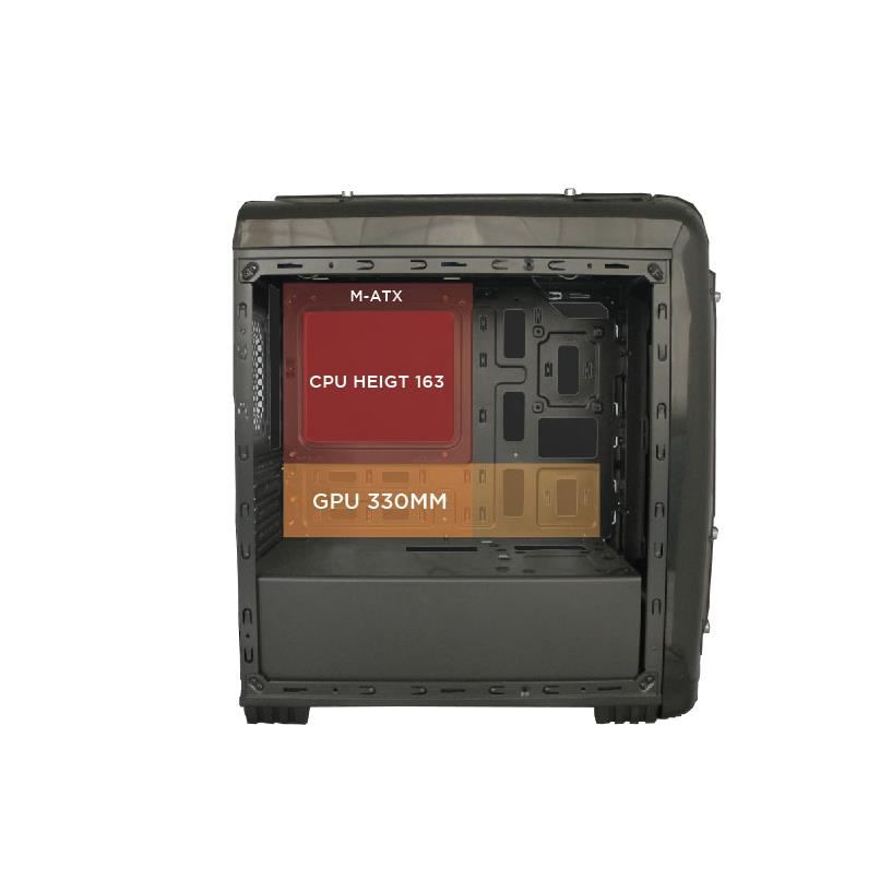 Carcasa Segotep Polar Light V2 neagra fara ventilatoare, SPCC Steel ATX Mini Tower, fara sursa (tip ATX, montata jos), interior vopsit negru, 2x/2.5” (intern), 2x3.5”/2.5” (intern), design tool-less, fata – 2x 120mm(optionale, pozitie ajustabila), spate – 1x 120mm (optional), tavan – 2x 120mm fans (optional, pozitie ajustabila), 1x USB 3.0, 2x USB 2.0, HD Audio, microATX / Mini-ITX, design premium cu panou lateral din plexiglas, sloturi expansiune: x4, inaltime maxima cooler procesor: 150mm, lungime maxima placa video: 310mm, lungime maxima sursa: 200mm, dimensiuni (h/w/d): 450 x 195 x 405mm