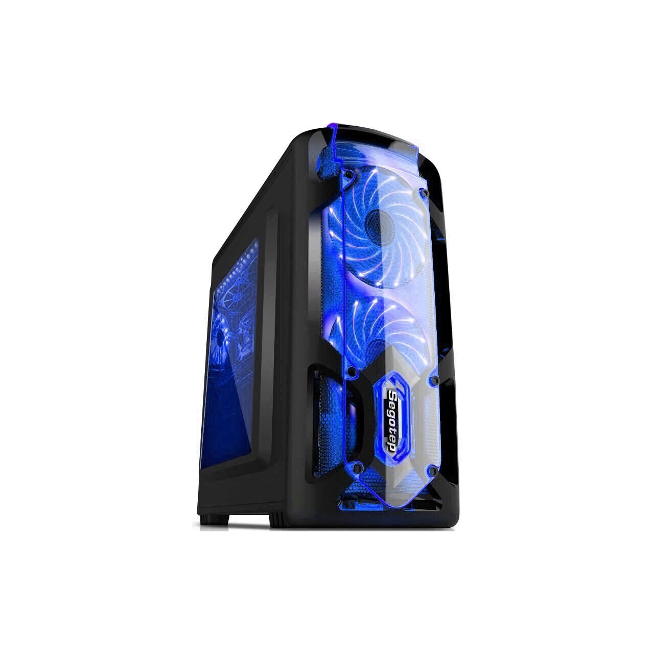 Segotep Polar Light v3 Black Case, SPCC Steel ATX Mini Tower, fara sursa (tip ATX, montata jos), interior vopsit negru, 2x/2.5” (intern), 2x3.5”/2.5” (intern), design tool-less, fata – 2x 120mm Blue LED fan (inclus, pozitie ajustabila), spate – 1x 120mm Blue LED fan (inclus), tavan – 2x 120mm fans (optional, pozitie ajustabila), 1x USB 3.0, 2x USB 2.0, HD Audio, microATX / Mini-ITX, sloturi expansiune: x4, inaltime maxima cooler procesor: 150mm, lungime maxima placa video: 310mm, lungime maxima sursa: 200mm, dimensiuni (h/w/d): 450 x 195 x 405mm