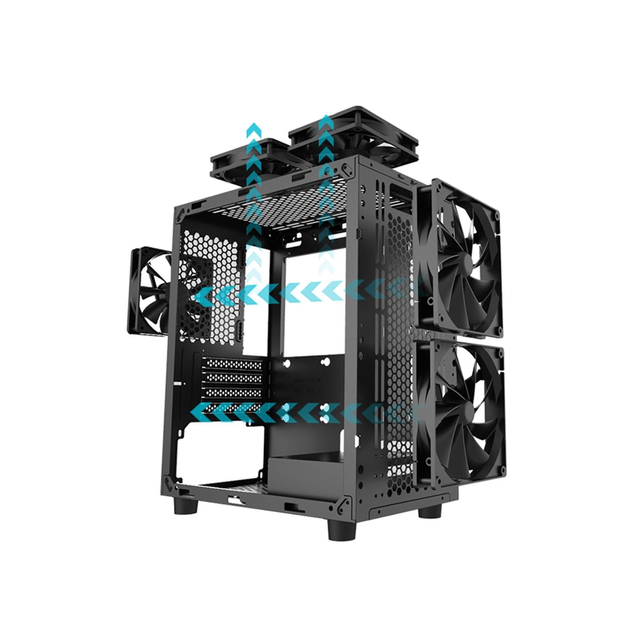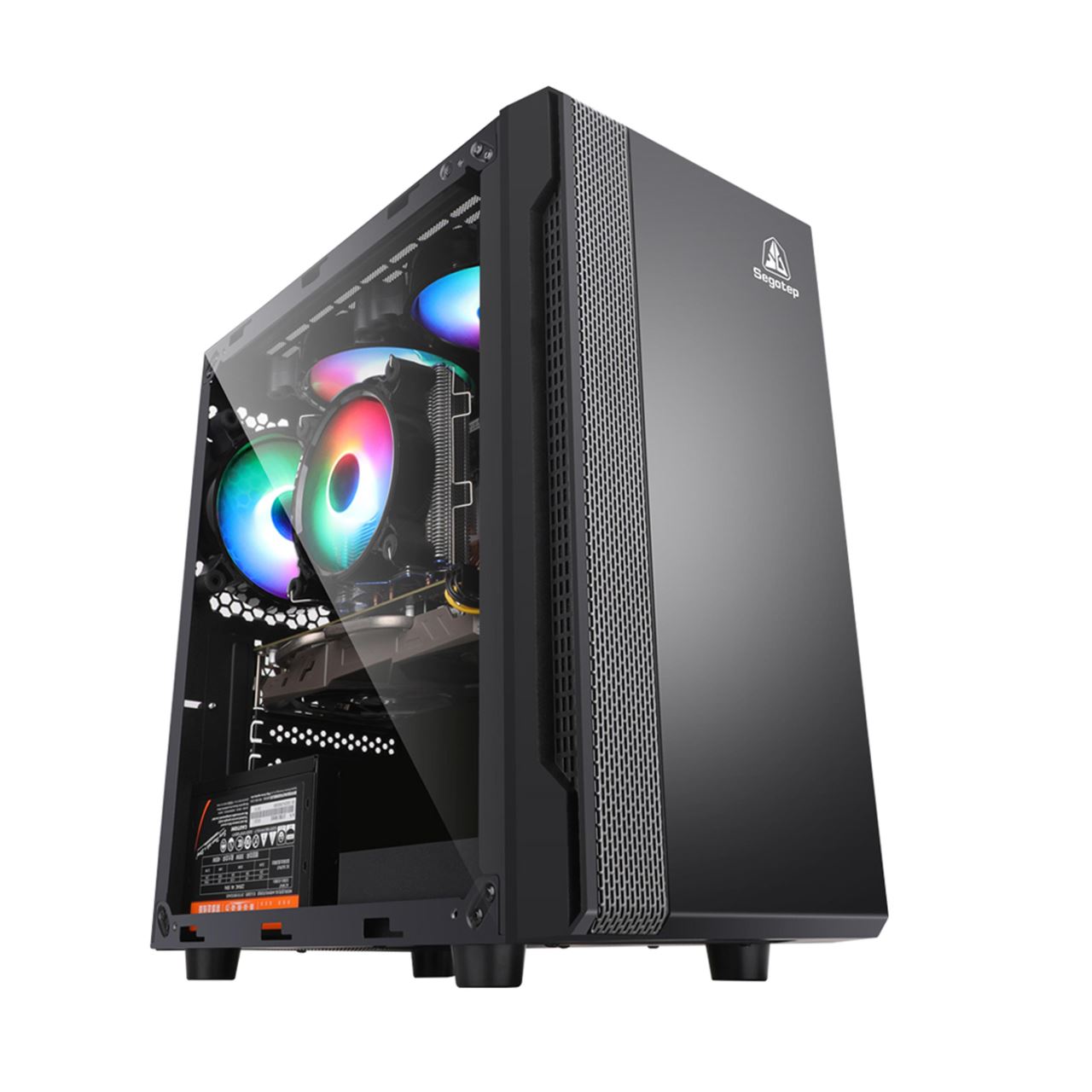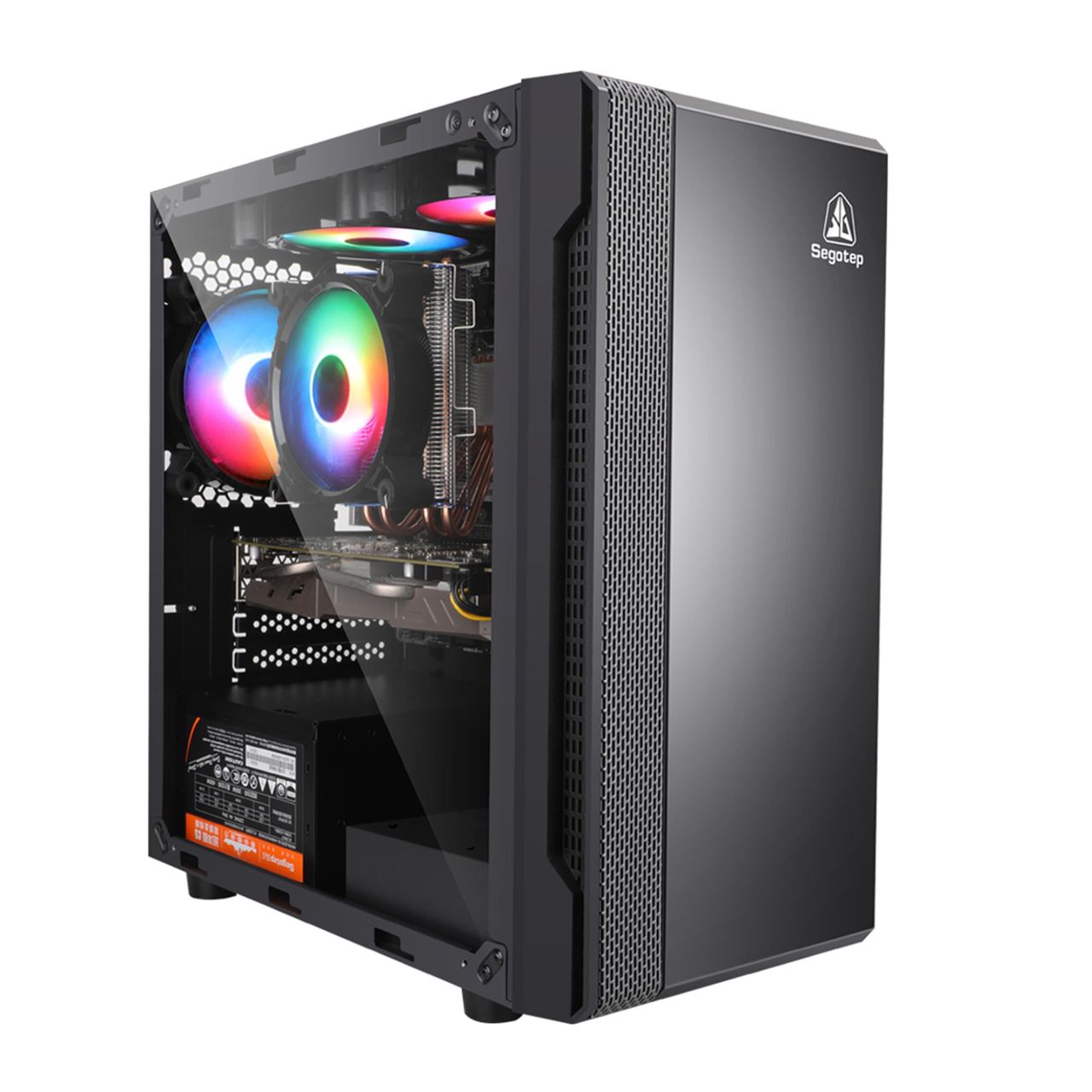 Carcasa Segotep Prime T neagra, SECC Steel Micro ATX Mini Tower, fara sursa (tip ATX, montata jos), interior vopsit negru, 1x 3.5" (intern). 3x 2.5" (intern), fata - 3x 120mm / 2x 140mm fan (optional), spate - 1x 120mm fan (optional), tavan - 2x 120mm / 1x 140mm fans (optional), filtru de praf amovibil pentru sursa si tavan, 1x USB 3.0, 2x USB 2.0, HD Audio, design premium cu panou lateral din sticla securizata, sloturi expansiune: x4, placi de baza suportate M-ATX / M-ITX, inaltima maxima cooler procesor: 158mm, lungime maxima placa video: 260mm (cu ventilatoare sau water cooling instalat in fata) sau 305mm (fara nimic montat in fata), dimensiuni: 365x190x365mm