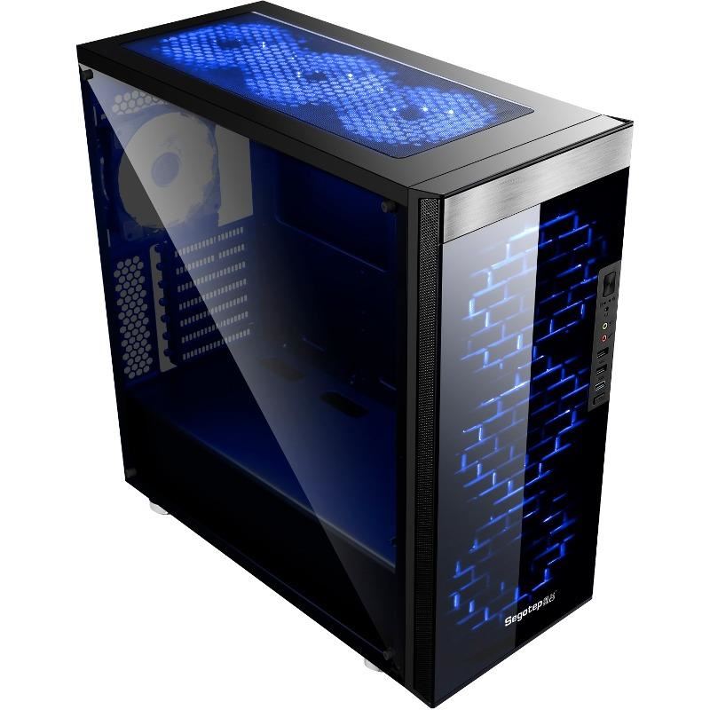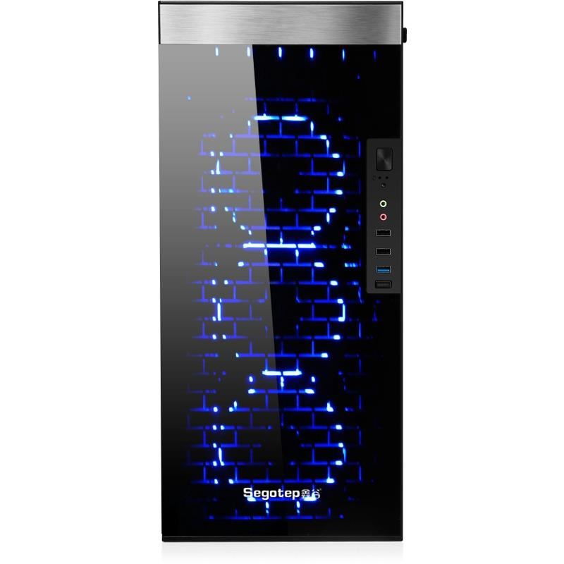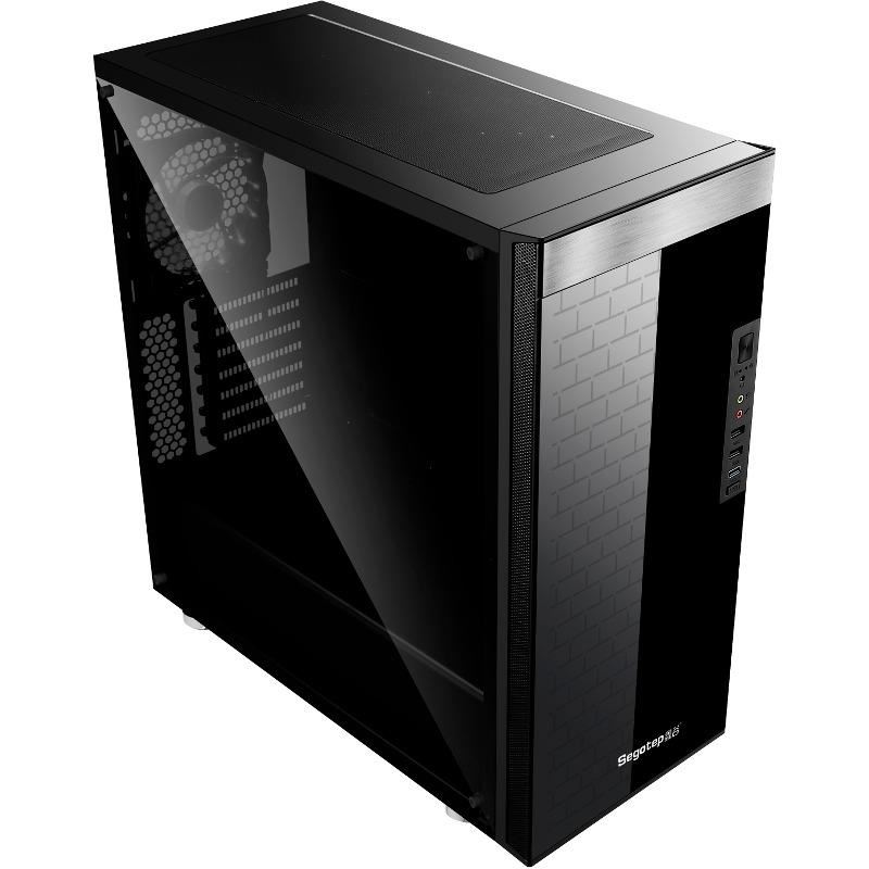 Segotep SG-K8 Black, SECC Steel ATX Mid Tower, fara sursa (tip ATX, montata jos), interior vopsit negru, 2x3.5” (intern), 2x2.5” (intern), fata – 3x 120mm RGB LED fans (inclus), spate – 1x 120/140mm fan (optional), tavan – 3x 120mm fans (optional) sau 2x 140mm fans (optional), design premium cu panou lateral din sticla securizata si diverse efecte de iluminare, 1x USB 3.0, 2x USB 2.0, HD Audio, include fan controller pentru 6 ventilatoare RGB si 2 benzi de iluminare RGB, ATX / microATX / Mini-ITX, sloturi expansiune: x7, inaltime maxima cooler procesor: 180mm, lungime maxima placa video: 430mm, dimensiuni (HxWxD): 492x230x473mm