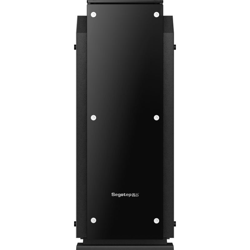 Segotep T5 Black, SECC Steel EATX Mid Tower, fara sursa (tip ATX, montata jos), interior vopsit negru, 2x3.5” (intern), 3x2.5” (intern), fata – 3x 120mm fans (ioptional, pozitie ajustabila) sau 2x 140mm fans (optional, pozitie ajustabila), spate – 1x 140/120mm fan (optional, pozitie ajustabila), tavan – 3x 120mm fans (optional) sau 2x 140mm fans (optional), design premium cu panou lateral, frontal si superior din sticla securizata, 1x USB 3.0, 2x USB 2.0, HD Audio, EATX / ATX / microATX / Mini-ITX, sloturi expansiune: x8+2, inaltime maxima cooler procesor: 175mm, lungime maxima placa video: 420mm, dimensiuni (HxWxD): 567 x 225 x 540mm