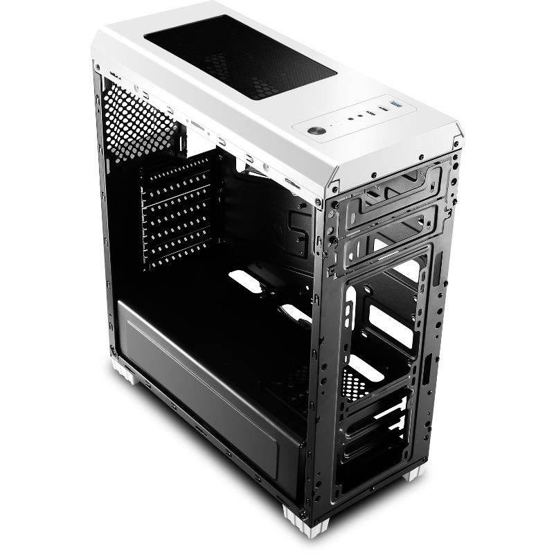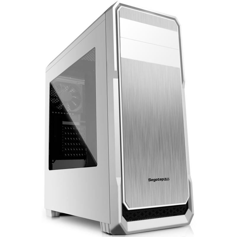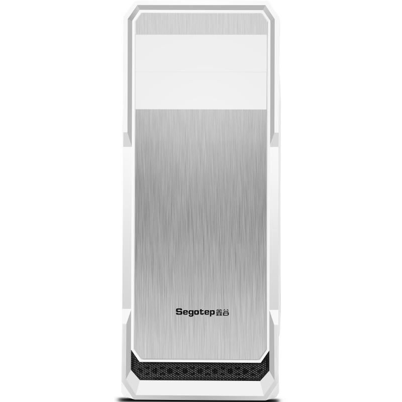 Segotep The Wind White, SPCC Steel ATX Mid Tower, fara sursa (tip ATX, montata jos), interior vopsit negru, 2x5.25” (extern), 3x3.5” (intern), 2x2.5” (intern), design tool-less, fata – 1x 120mm Blue LED fan (inclus) si 1x 120mm fan (optional), spate – 1x 120mm fan (inclus), tavan – 2x 120mm fans (optional), cusca hdd – 1x 92/80mm fan (optional), 1x USB 3.0, 2x USB 2.0, HD Audio, ATX / microATX / Mini-ITX, sloturi expansiune: x7, inaltime maxima cooler procesor: 155mm, lungime maxima placa video: 360mm, filtru de praf superior cu monatre magnetica, dimensiuni (h/w/d): 461 x 190 x 430mm
