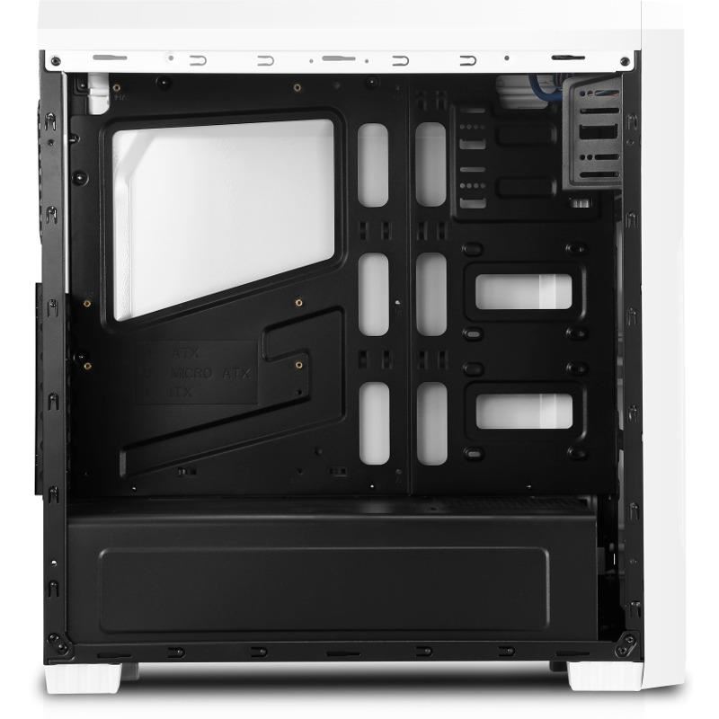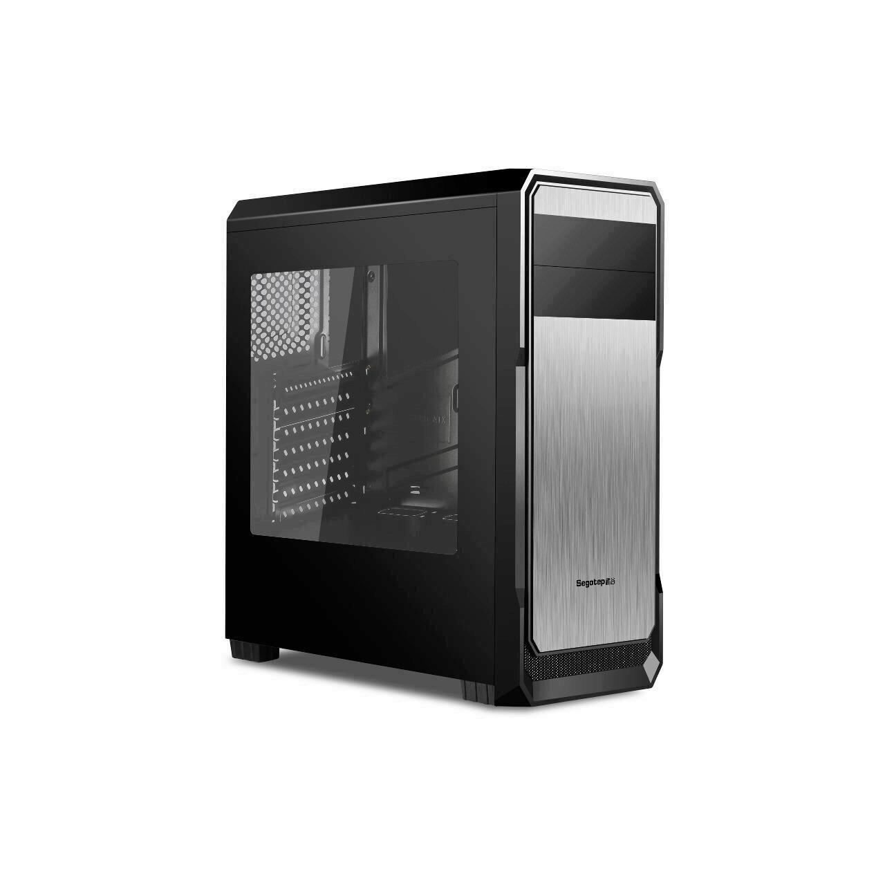Segotep The Wind Black, SPCC Steel ATX Mid Tower, fara sursa (tip ATX, montata jos), interior vopsit negru, 2x5.25” (extern), 3x3.5” (intern), 2x2.5” (intern), design tool-less, fata – 1x 120mm Blue LED fan (inclus) si 1x 120mm fan (optional), spate – 1x 120mm fan (inclus), tavan – 2x 120mm fans (optional), cusca hdd – 1x 92/80mm fan (optional), 1x USB 3.0, 2x USB 2.0, HD Audio, ATX / microATX / Mini-ITX, sloturi expansiune: x7, inaltime maxima cooler procesor: 155mm, lungime maxima placa video: 360mm, filtru de praf superior cu monatre magnetica, dimensiuni (h/w/d): 461 x 190 x 430mm