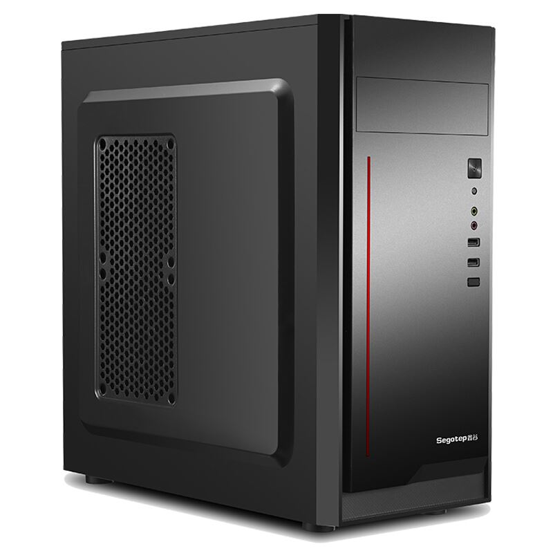 Segotep V5 Black Case, SPCC Steel ATX Mid Tower, fara sursa (tip ATX, montata sus), interior vopsit negru, 1x 5.25" (extern), 2x 3.5" (intern), 2x 2.5" (intern), fata - 3x 120mm fan (optional), spate - 1x 120mm fan (inclus), 1x USB 3.0, 2x USB 2.0, HD Audio, ATX / microATX / Mini-ITX, sloturi expansiune: x7, inaltime maxima cooler procesor: 150mm, lungime maxima placa video: 330mm, dimensiuni: 410x176x440mm