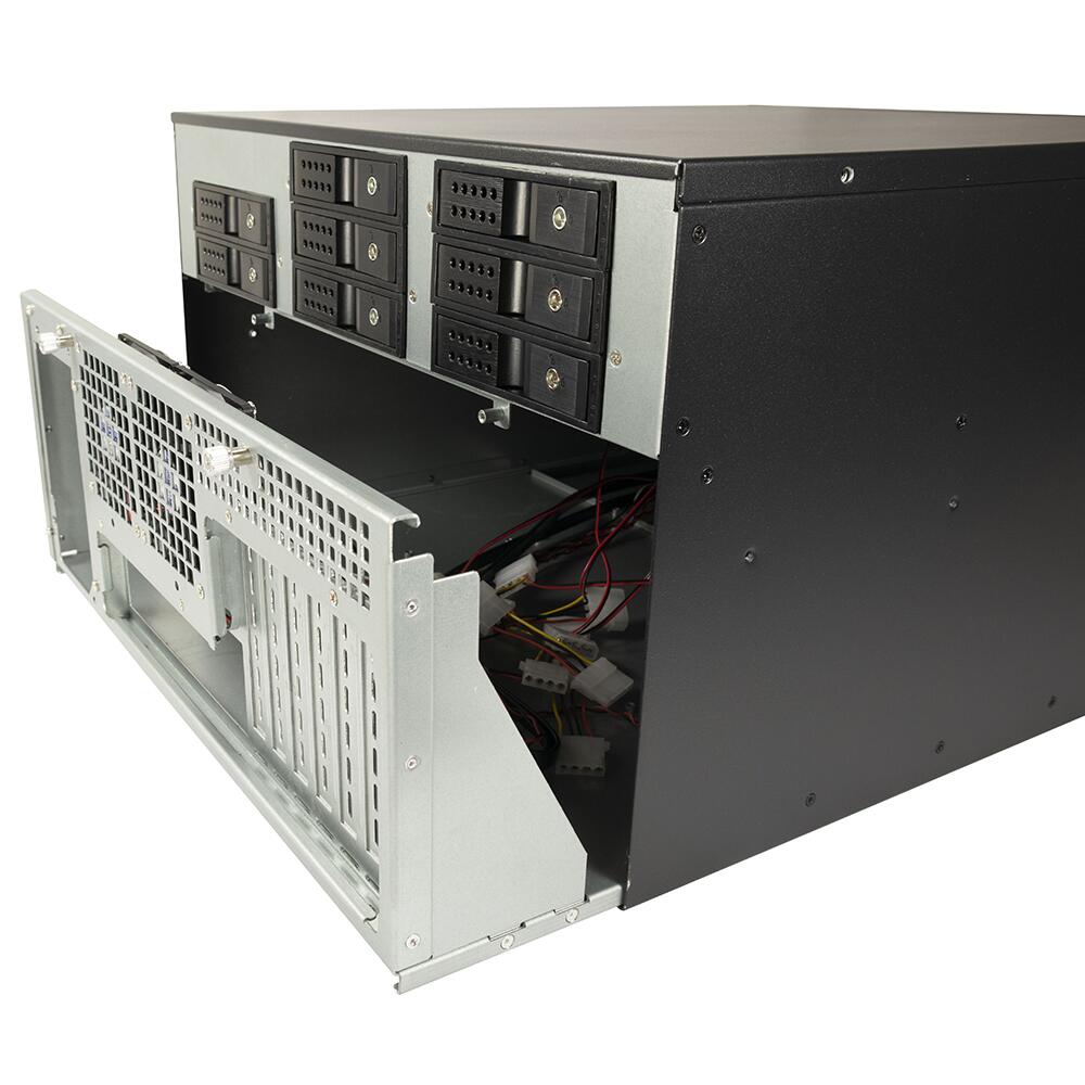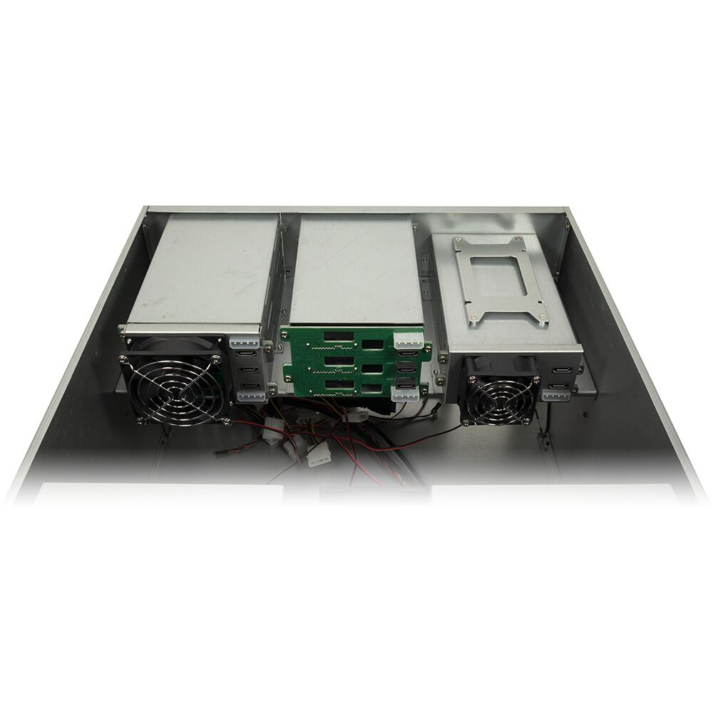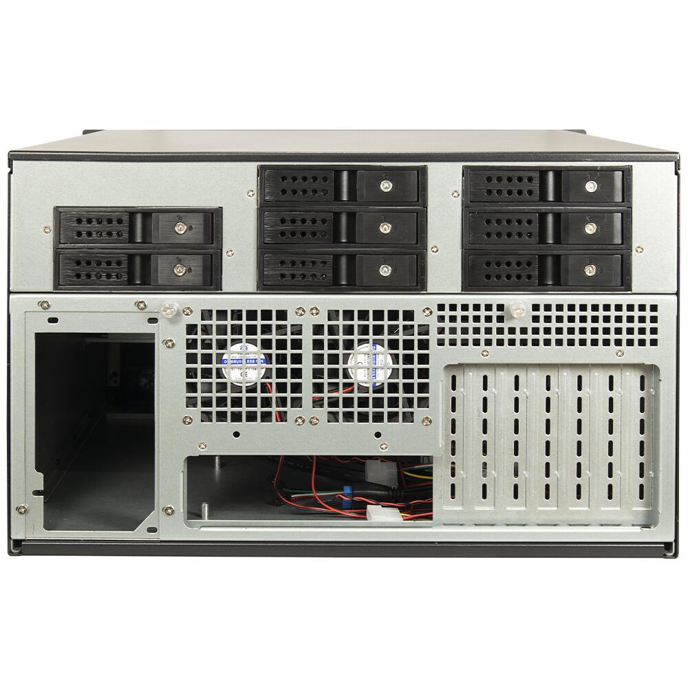 Carcasa server rack-abila Inter-Tech 6U-6520 19” tip storage, carcasa server 4U pentru rack, fara sursa (tip ATX sau Mini-Redundant PS/2), 20x2.5”/3.5” hot swap (extern), 2x 5.25”(extern), 2x 2.5”(intern), bara centru – 4x 80mm fans (inclus) si 1x 60mm fan (inclus), spate – 2x 80mm fans (inclus), material: otel 1.0-1.2mm, 2x USB 3.2 Gen1, compatibilitate placi de baza: ITX, Micro-ATX, ATX, E-ATX, SSI EEB (placile de baza E-ATX și SSI nu trebuie sa aiba parti in zona frontala cu o inaltime mai mare de 5,5 cm), dimensiuni: 481x515x267mm, greutate: 18.93Kg