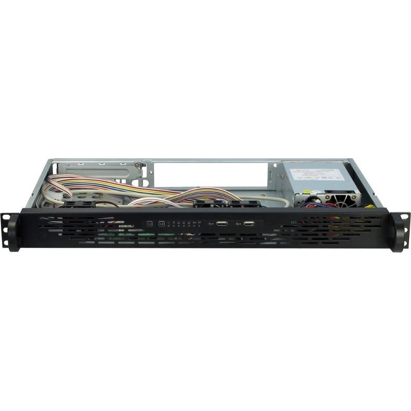 Inter-Tech IPC 1U-K-125L 19” 250W rack case, carcasa server 1U pentru rack, cu sursa 250W (2x SATA, 2x Molex, tip Flex ATX), 1x3.5” (intern, max.), 2x2.5” (intern, max.), ventilatoare: 3x 40mm (inclus), 1x USB 3.0, 1x USB 2.0, material: otel 1.0-1.2mm, dimensiuni (h/w/d): 45 x 480 x 285mm, compatibilitate placi de baza: Mini-ITX