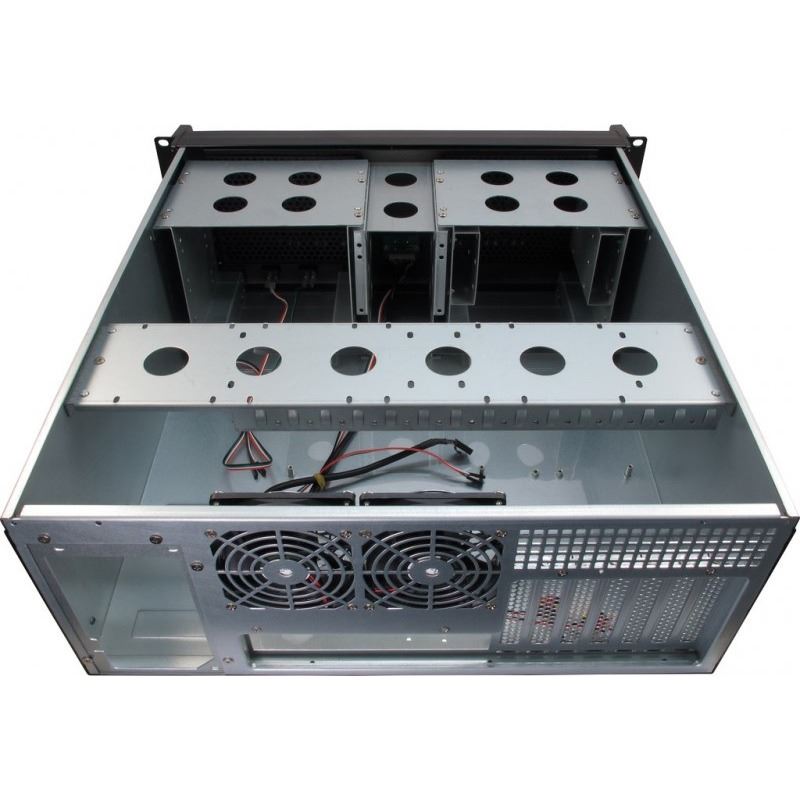 Inter-Tech IPC 4U-4098-S 19” rack case, carcasa server 4U pentru rack, fara sursa (tip ATX sau PS2 Mini-Redundant), 6x5.25” (extern), 5x3.5” (intern), 6x2.5” (intern, inaltime maxima unitati: 4x9.5mm si 2x15mm), spate – 2x 80mm fans (inclus), 2x USB 2.0, material: otel 1.0-1.2mm, filtre de praf incluse, dimensiuni (h/w/d): 178 x 485 x 520mm, compatibilitate placi de baza: ATX, microATX, Mini-ITX (dimensiuni maxime: 305 x 300mm)