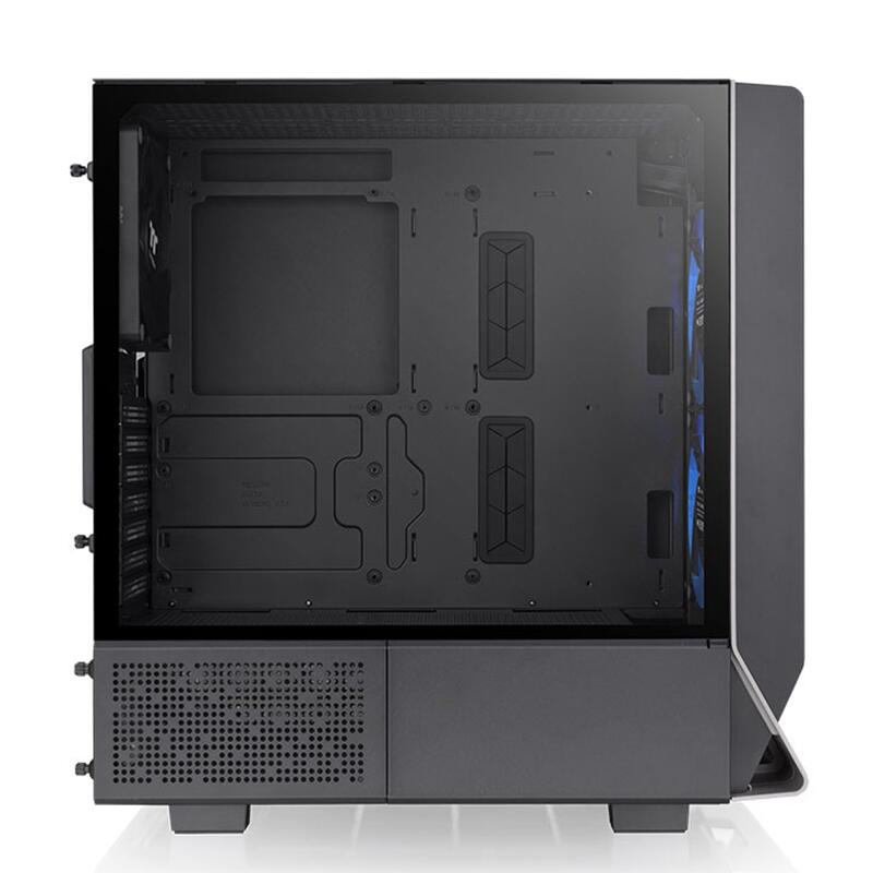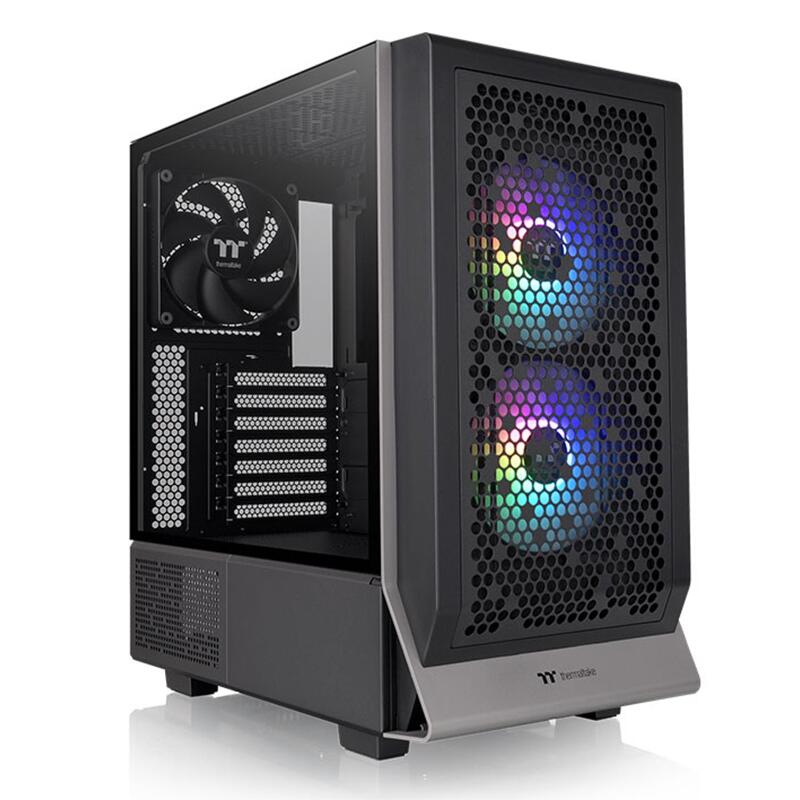 Carcasa Thermaltake Ceres 300 TG aRGB neagra, SPCC Steel ATX Mid Tower, fara sursa (tip ATX, montata jos), interior vopsit negru, design premium cu panou lateral cu grosimea de 34mm si panou frontal perforat, 1x3.5” (intern) sau 2x 2.5” (intern), design tool-less, fata – 3x 120mm fan (optional) / 2x 140mm aRGB LED fans (inclus), spate – 1x 120mm fan (optional) / 1x 140mm fan (inclus), tavan – 3x 120mm / 2x 140mm fan (optional), 1x USB 3.2 (Gen 2) Type-C, 2x USB 3.0, HD Audio, sloturi expansiune: x7 (se pot roti 90°), E-ATX (12" x 13") / ATX / microATX / Mini-ITX, inaltime maxima cooler procesor: 185mm, lungime maxima placa video: 340mm (cu radiator monat in partea din fata) sau 370mm (fara radiator monat in partea din fata) , suport radiatoare water cooling: fata – 1 x 360/240/120/280/140mm, tavan – 1 x 280/240/140/120mm, spate – 1x 120mm, dimensiuni (HxWxD): 475 x 245 x 463 mm, greutate: 7.8kg