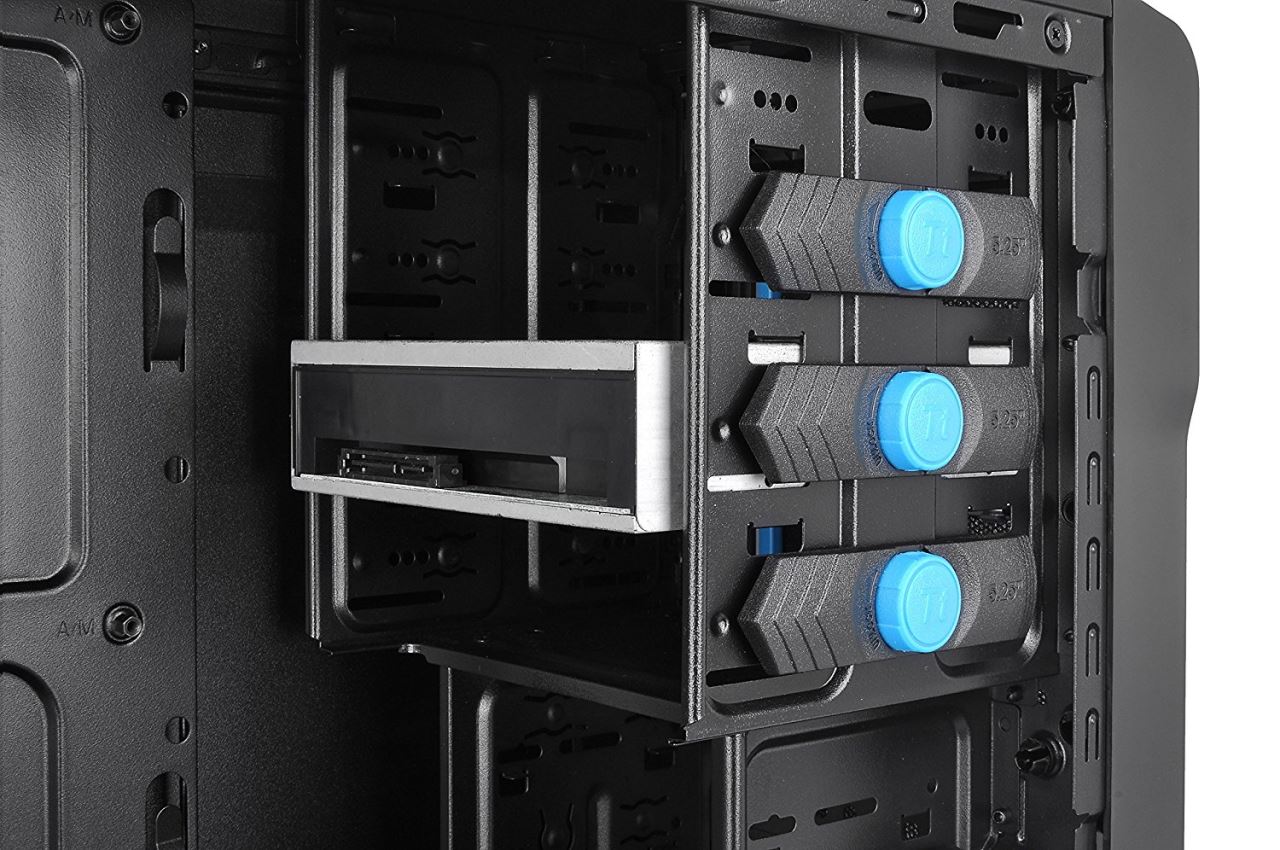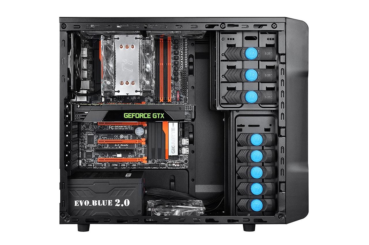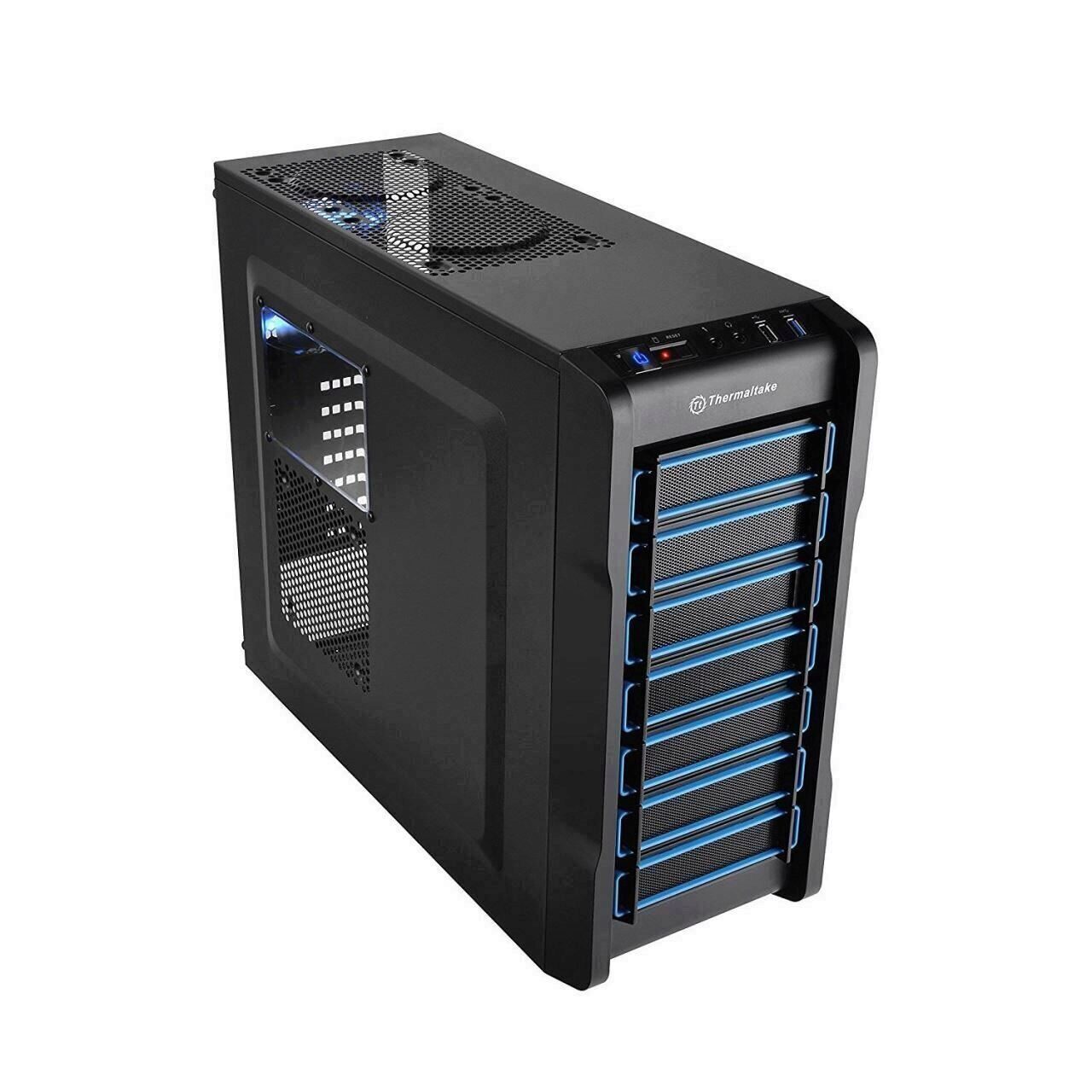 Thermaltake Chaser A21, SECC Steel ATX Mid Tower, fara sursa, interior vopsit in negru, 3x5.25” (extern), 1x3.5” (extern, convertibil dintr-un bay de 5.25”), 6x3.5” (intern), 1x2.5” (intern), design tool-less, fata – 1x 120mm fan (optional), spate – 1x 120mm Blue LED fan (1000 RPM, 16 dBA, inclus), podea – 1x 120mm fan (optional), tavan – 2x 120mm fans (optional), lateral – 1x 120mm fan (optional), 1x USB 3.0, 1x USB 2.0, HD Audio, ATX / microATX, filtre de praf incluse, dimensiuni: 427 x 195 x 497 mm, greutate: 5.2 kg