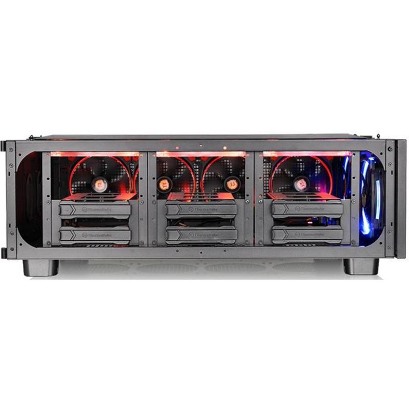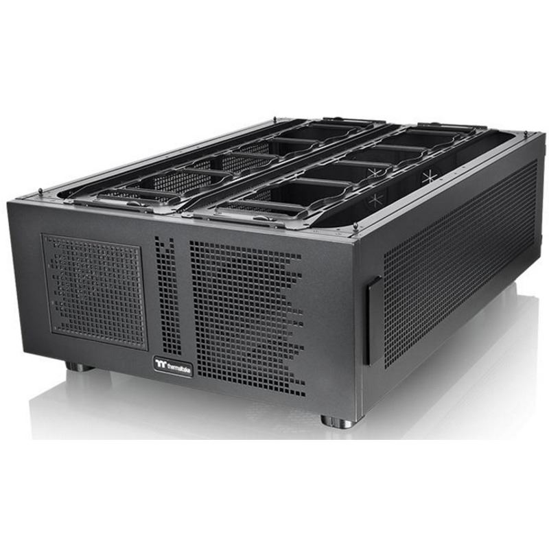 Thermaltake Core P200, SPCC Steel Pedestal, fara surse (tip ATX), design ce permite stivuirea carcaselor Core W200 si Core P200 pentru o constructie modulara, interior vopsit negru, fata – 1x 140/120mm fan (optional), podea – 4x 140/120mm fans (optional, fara sursa montata), tavan – 8x 140/120mm fans (optional) sau 3x 200mm fans (optional), lateral – 4x 140/120mm fans (optional), nu permite montarea unei placi de baza (se foloseste impreuna cu carcasa Core W200), suport radiatoare water cooling: tavan – 2 x 480mm sau 2 x 560mm sau 1 x 600mm, lateral – 1 x 480mm sau 1 x 560mm, podea – 2 x 560mm, dimensiuni (h/w/d): 249 x 475 x 678mm, greutate: 10.2kg