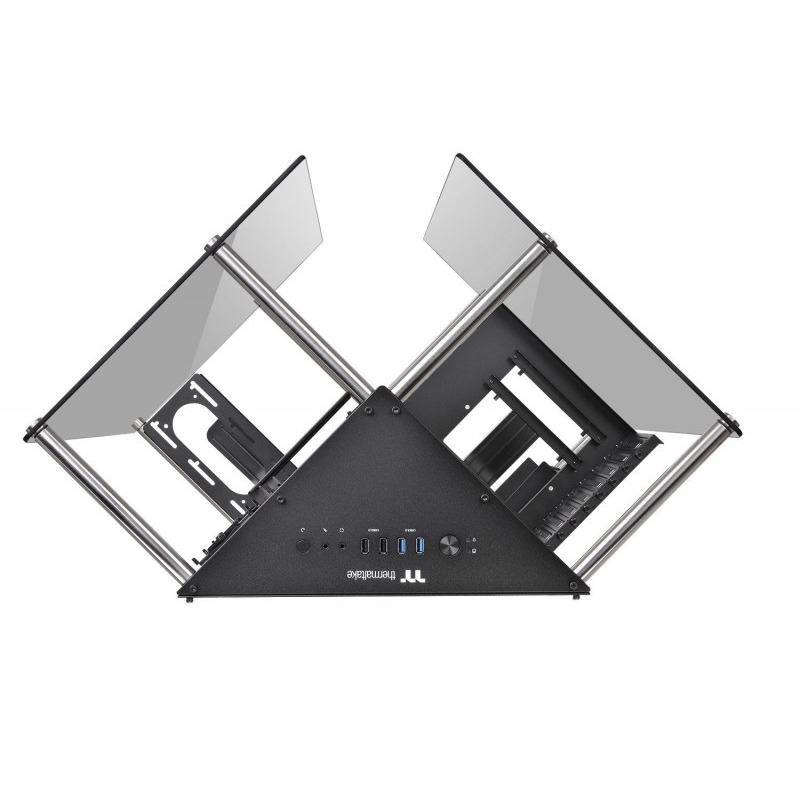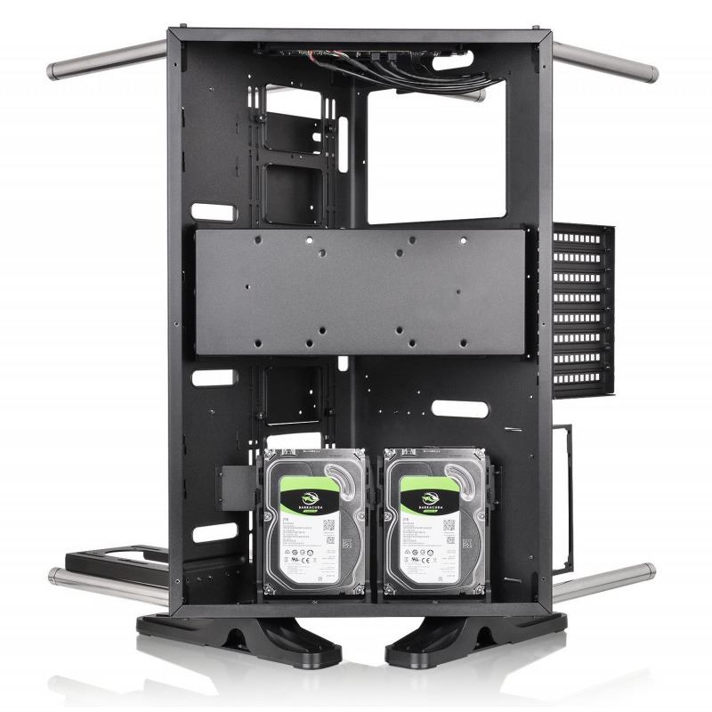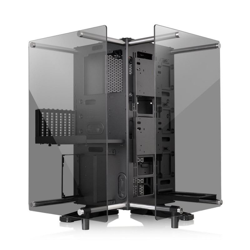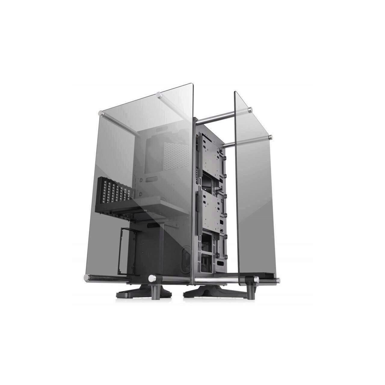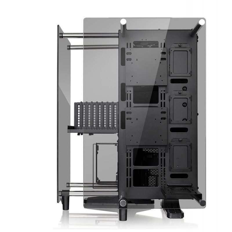 Thermaltake Core P90 Tempered Glass Edition, SPCC Steel ATX Mid Tower, fara sursa, interior vopsit negru, 3x2.5” (la exterior), 2x3.5”/2.5” (la exterior), 2x3.5”/2.5” (la interior), design tool-less, partea dreapta – 3x 140mm sau 4x 120mm fans (optional), 2x USB 3.0, 2x USB 2.0, HD Audio, sloturi expansiune: x8, ATX / microATX / Mini-ITX, inaltime maxima cooler procesor: 180mm, lungime maxima placa video: 320mm, lungime maxima sursa alimentare: 220mm, suport radiatoare water cooling: partea dreapta – 1 x 420mm sau 1 x 480mm, dimensiuni (HxWxD): 615 x 470 x 470mm, greutate: 17.2kg
