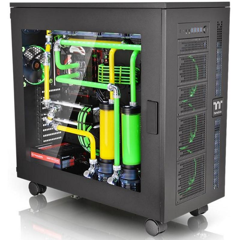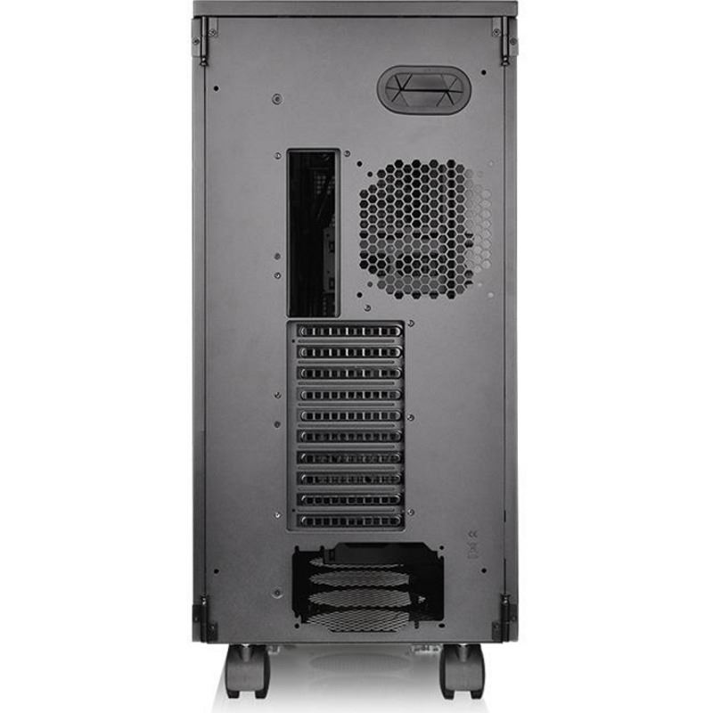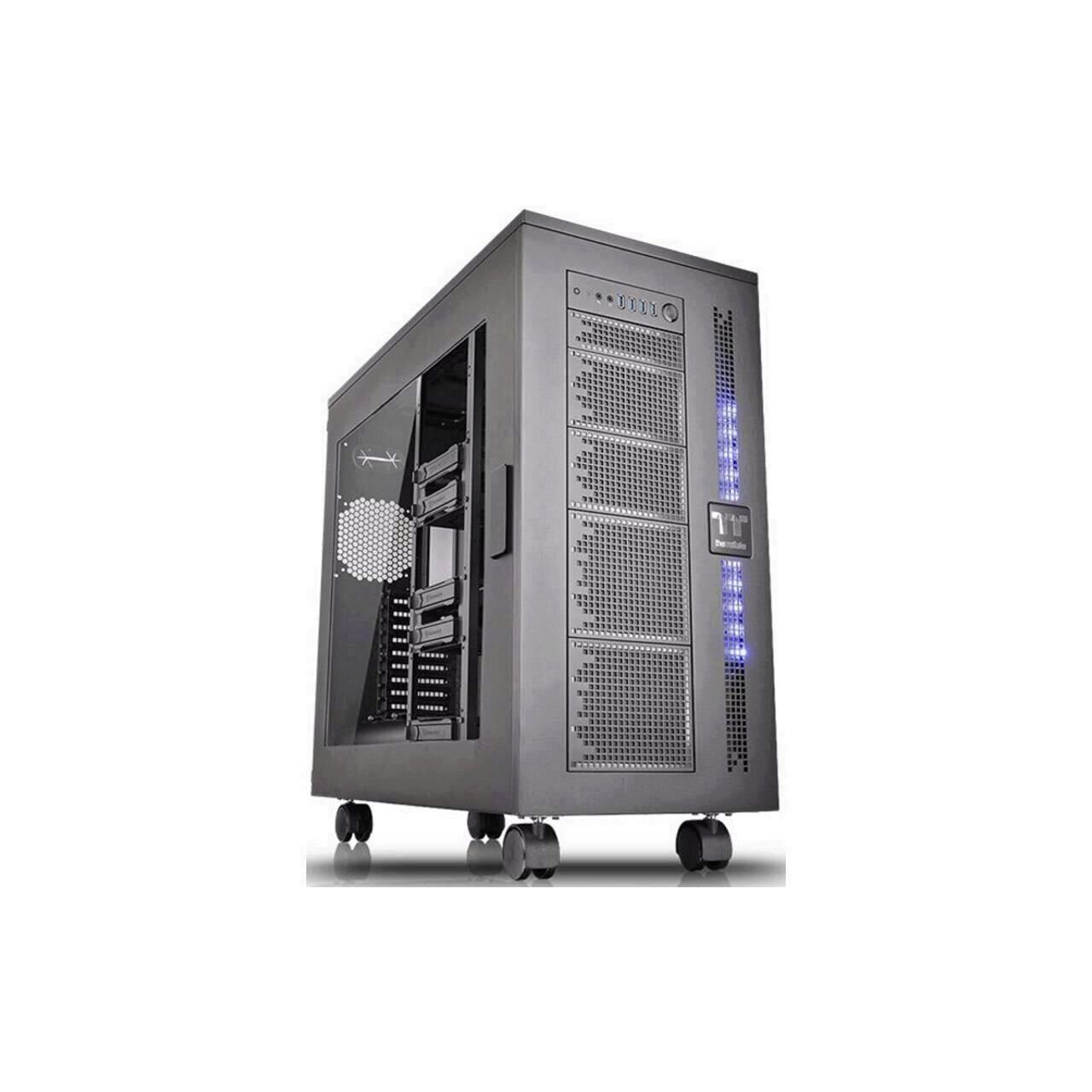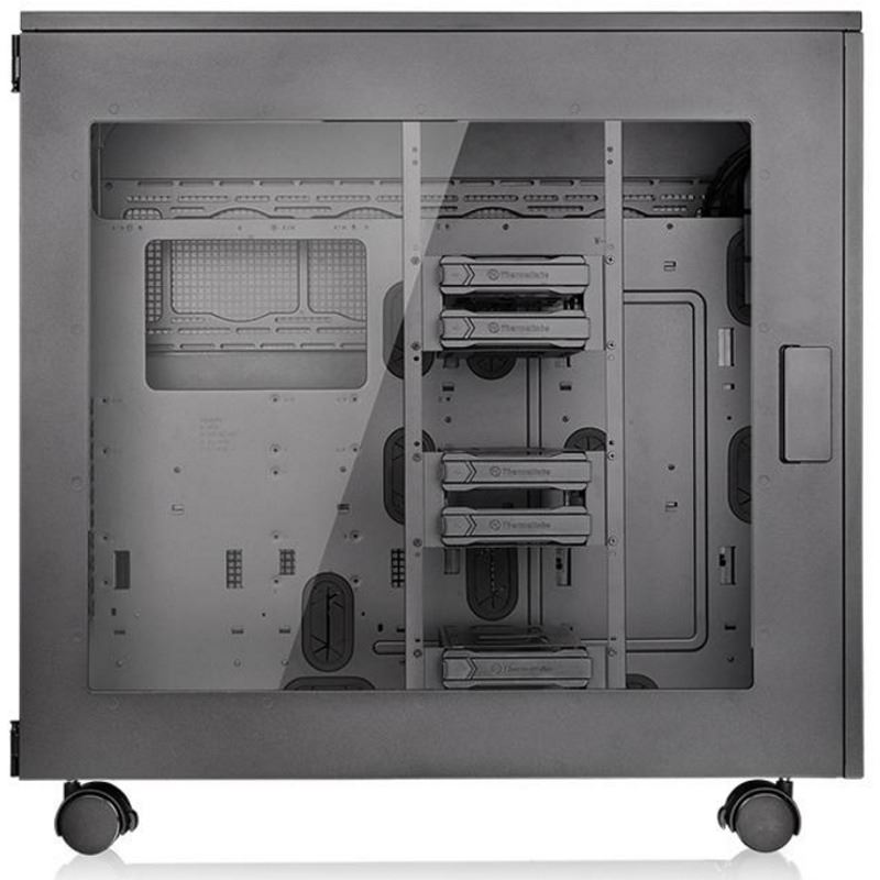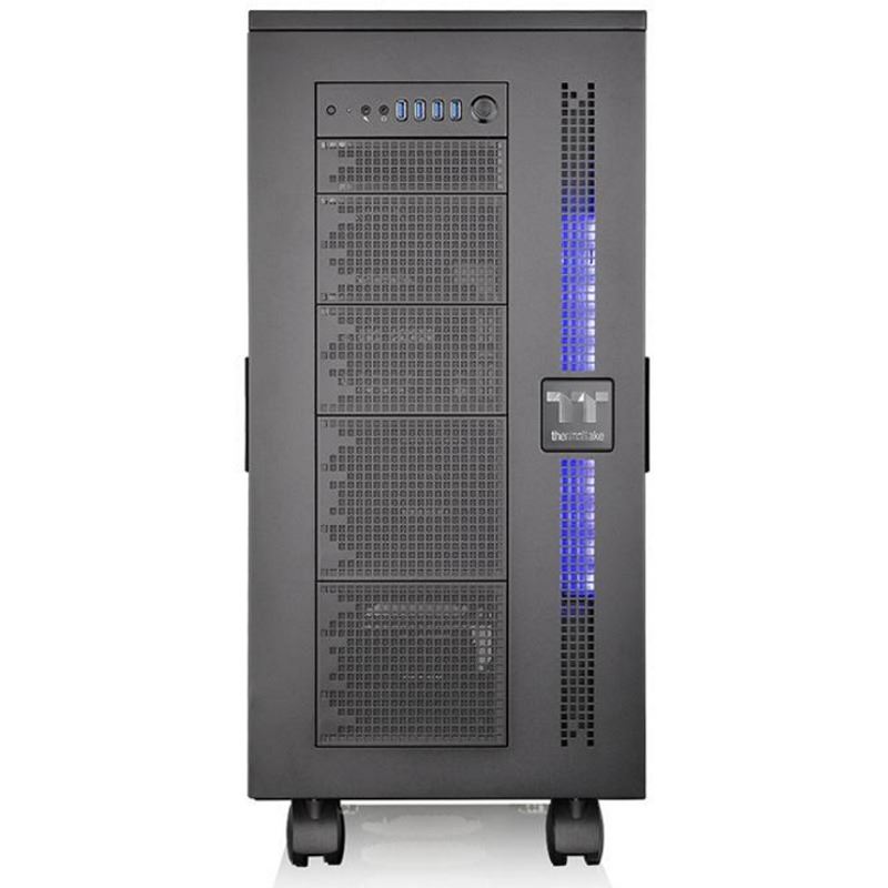 Thermaltake Core W100, SPCC Steel XL-ATX/EATX Super Tower, fara sursa (tip ATX, montata jos), design ce permite stivuirea carcaselor Core W100 si Core P100 pentru o constructie modulara, interior vopsit negru, 3x5.25” (extern), 6x3.5”/2.5” (intern), 4x3.5”/2.5” (intern), design tool-less, fata – 3x 140/120mm fans (optional), spate – 1x 140/120mm fan (optional), podea – 3x 140/120mm fans (optional), tavan – 4x 140/120mm fans (optional) sau 3x 200mm fans (optional), lateral dreapta – 8x 140/120mm fans (optional) sau 6x 200mm fans (optional), 4x USB 3.0, HD Audio, sloturi expansiune: x10, XL-ATX / EATX / ATX / microATX / Mini-ITX, inaltime maxima cooler procesor: 200mm, lungime maxima placa video: 470mm (cu rack HDD) sau 635mm (fara rack HDD), lungime maxima sursa: 220mm (cu doua ventilatoare montate in podea) sau 180mm (cu trei ventilatoare montate in podea), suport radiatoare water cooling: fata – 1 x 360mm sau 1 x 420mm, tavan – 1 x 480mm sau 1 x 560mm sau 1 x 600mm, spate – 1 x 120mm sau 1 x 140mm, podea – 1 x 140mm sau 1 x 280mm, dimensiuni (h/w/d): 677 x 310 x 678mm, greutate: 22.4kg
