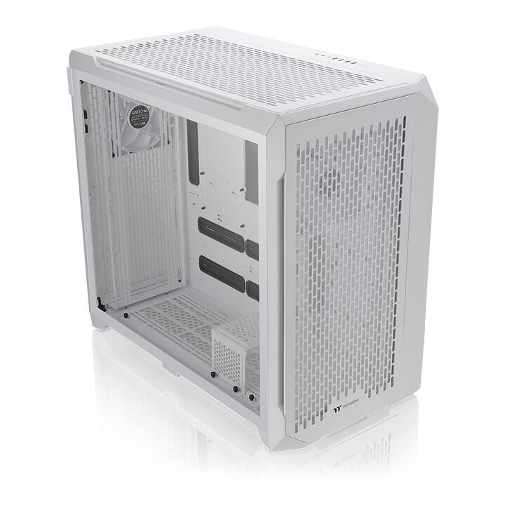 Carcasa Thermaltake CTE C750 Air Snow, SPCC / ABSl ATX Full Tower, placa de baza se monteaza cu conectorii in partea de sus a carcasei, conectorii au un spatiu de wire management situat sub capacul de pe tavan permitand un acces facil , fara sursa (tip ATX, montata jos, compartiment separat ce poate fi utilizat pentru cable management), interior vopsit alb, design premium cu panou lateral cu balama din sticla securizata cu grosimea de 3mm si panou frontal perforat, 7x3.5” (intern) sau 12x 2.5” (intern), design tool-less, fata – 3x 120mm / 2x 140mm / 2x 200mm fans (optional) / 1x 140mm CT140 fan (inclus), spate – 3x 120mm / 2x 140mm / 2x 200mm fans (optional) / 1x 140mm CT140 fan (inclus), tavan – 3x 120mm / 2x 140mm fan (optional) / 1x 140mm CT140 fan (inclus), podea – 3x 120/140mm fans (optional), 1x USB 3.2 (Gen 2) Type-C, 4x USB 3.0, HD Audio, sloturi expansiune: x7, E-ATX (12" x 13") / ATX / microATX / Mini-ITX, inaltime maxima cooler procesor: 190mm, lungime maxima placa video: 370mm (cu radiator monat in partea din fata) sau 420mm (fara radiator monat in partea din fata) , suport radiatoare water cooling: fata – 1 x 420(AIO only)/360/240/120/280/140/120mm, tavan – 1 x 240/140/120mm, spate – 1 x 420(AIO only)/360/240/120/280/140/120mm, podea – 1x 360/280/240/140/120mm, dimensiuni (HxWxD): 565 x 327 x 599 mm, greutate: 16.7kg