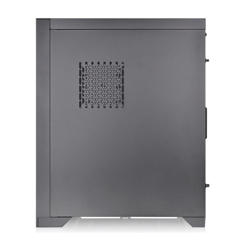 Carcasa Thermaltake CTE T500 Tempered Glass neagra iluminare aRGB, SPCC / ABSl ATX Full Tower, placa de baza se monteaza cu conectorii in partea de sus a carcasei, conectorii au un spatiu de wire management situat sub capacul de pe tavan permitand un acces facil , fara sursa (tip ATX, montata jos, compartiment separat ce poate fi utilizat pentru cable management), interior vopsit negru, design premium cu panou lateral cu balama din sticla securizata cu grosimea de 3mm si panou frontal perforat si acoperit cu sticla securizata, 7x3.5” (intern) sau 6x 2.5” (intern), design tool-less, fata – 3x 120mm / 3x 140mm fans (optional) / 1x 140mm CT140 fan (inclus), spate – 3x 120mm / 3x 140mm (optional) / 1x 140mm CT140 fan (inclus), tavan – 2x 120mm / 2x 140mm fan (optional) / 1x 140mm CT140 fan (inclus), podea – 1x 120mm / 1x 140mm fans (optional), PSU Cover – 1x 120mm / 1x 140mm fans (optional), 1x USB 3.2 (Gen 2) Type-C, 2x USB 3.0, HD Audio, sloturi expansiune: x7, E-ATX (12" x 13") / ATX / microATX / Mini-ITX, inaltime maxima cooler procesor: 195mm, lungime maxima placa video: 385mm , suport radiatoare water cooling: fata – 1 x 420(AIO only)/360/240/120/280/140/120mm, spate – 1 x 360/240/120/280/140/120mm, tavan – 1x 120mm(AIO only), dimensiuni (HxWxD): 615 x 275 x 516 mm, greutate: 15.3kg