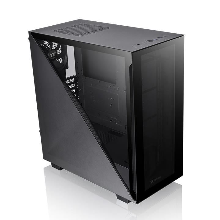 Carcasa Thermaltake Divider 300 Tempered Glass neagra, SPCC Steel ATX Mid Tower, fara sursa, interior vopsit negru, 2x 3.5” (intern), 5x 2.5” (intern), design tool-less, DMD: Dismantlable Modular Design, fata – 3x 120mm (optional), spate – 1x 120mm Turbo fan (1000 RPM, 16 dBA, inclus), lateral drapta – 2x 120mm fans (optional), tavan – 1x 120mm fans (optional), 2x USB 3.0, 1x USB 3.2 (Gen 2) Type-C x 1, HD Audio, sloturi expansiune: x7 (se pot roti), ATX / microATX / Mini-ITX, inaltime maxima cooler procesor: 145mm, lungime maxima placa video: 360mm (cu radiator) sau 390mm (fara radiator), lungime maxima sursa alimentare: 180mm (cu cusca HDD instalata) sau 220mm (fara cusca HDD instalata), suport radiatoare water cooling: fata – 1 x 120mm sau 1 x 240mm sau 1 x 360mm sau 1 x 140mm sau 1 x 280mm, lateral dreapta – 1 x 120mm sau 1 x 240mm, spate – 1 x 120mm, filtre de praf incluse, dimensiuni: 475 x 220 x 461mm, greutate: 8.47kg