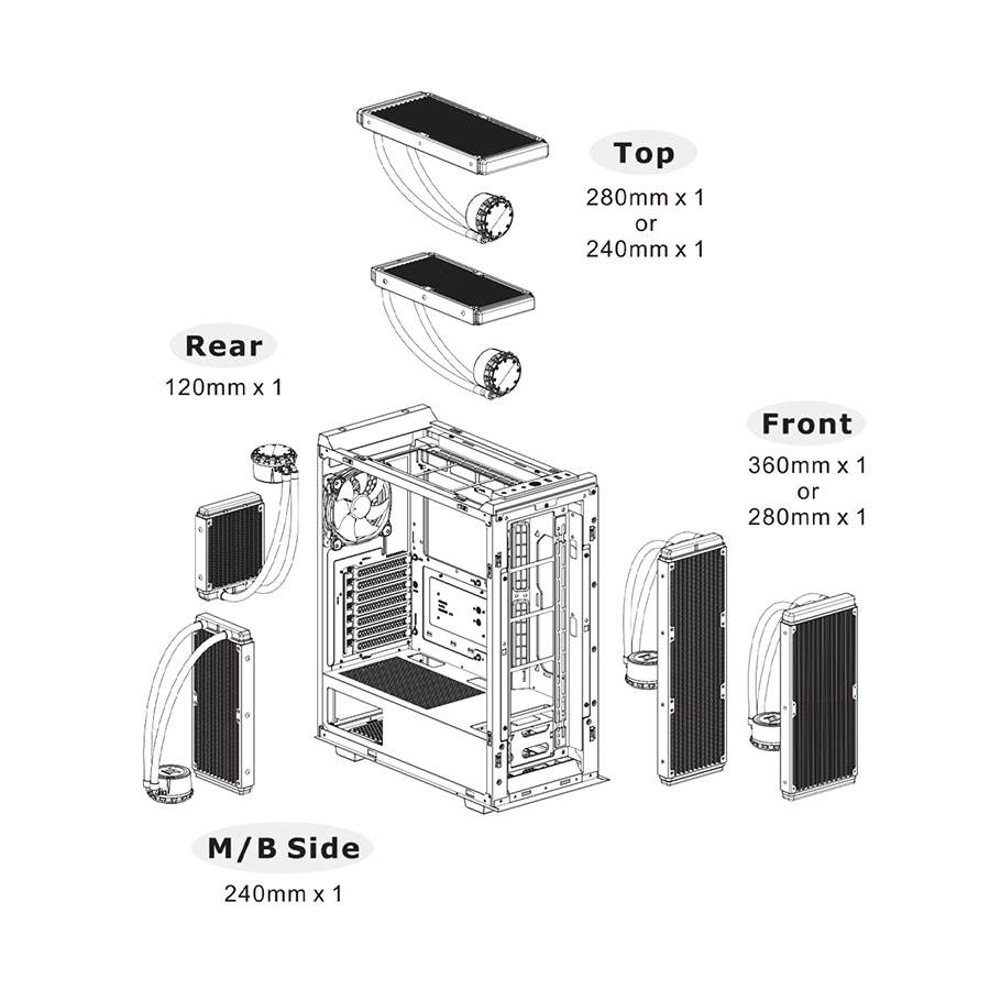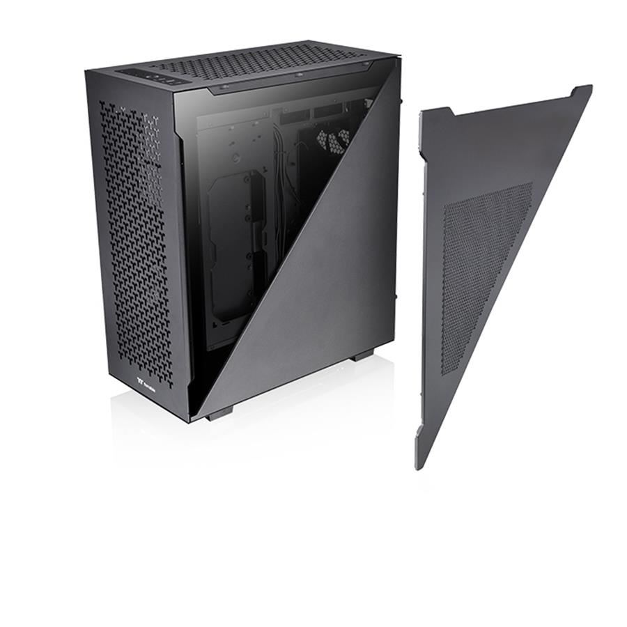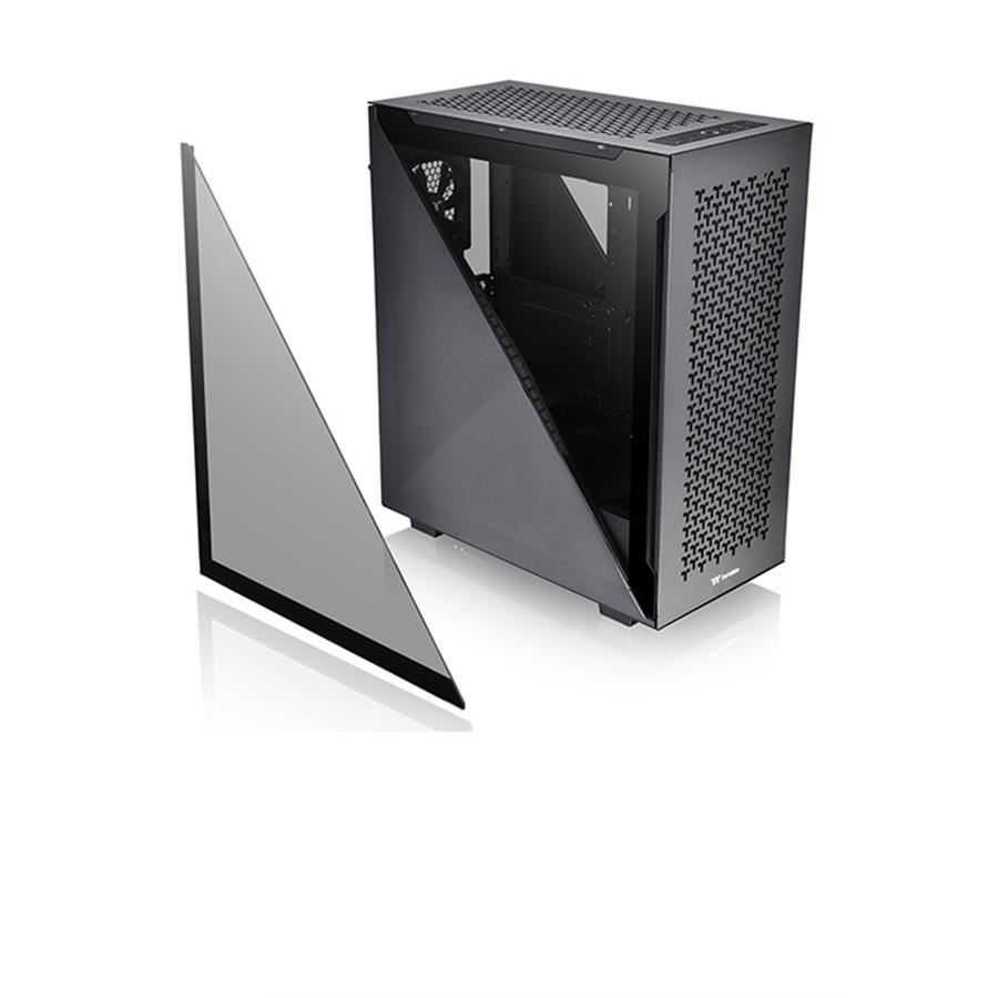 Carcasa Thermaltake Divider 500 TG Air neagra, SPCC Steel ATX Mid Tower, fara sursa, interior vopsit negru, 2x 2.5”/3.5” (intern), 5x 2.5” (intern), design tool-less, DMD: Dismantlable Modular Design, fata – 1x 120mm fan (1200rpm, 22 dBA inclus) / 2x 120mm/3x 140mm fan (optional), spate – 1x 120mm fan (1200 RPM, 22 dBA, inclus), lateral dreapta – 2x 120mm fans (optional), tavan – 2x 120/140mm fans (optional), design premium cu panou lateral din sticla securizata si metal si panou frontal din tabla perforata cu logo-ul Thermaltake Premium, 2x USB 3.0, 1x USB 3.2 (Gen 2) Type-C x 1, HD Audio, sloturi expansiune: x7 (se pot roti), ATX / microATX / Mini-ITX, inaltime maxima cooler procesor: 155mm (jumatate de panou din sticla si jumatate din tabla) sau 170mm (cu ambele jumatati din sticla), lungime maxima placa video: 360mm (cu radiator) sau 390mm (fara radiator), lungime maxima sursa alimentare: 180mm (cu cusca HDD instalata) sau 220mm (fara cusca HDD instalata), suport radiatoare water cooling: fata – 1 x 120/240/360/140/280mm, lateral dreapta – 1 x 120/240mm, spate – 1 x 120mm, tavan – 1 x 120/240/140/280mm, filtre de praf incluse, dimensiuni: 530 x 230 x 466mm, greutate: 10.29kg