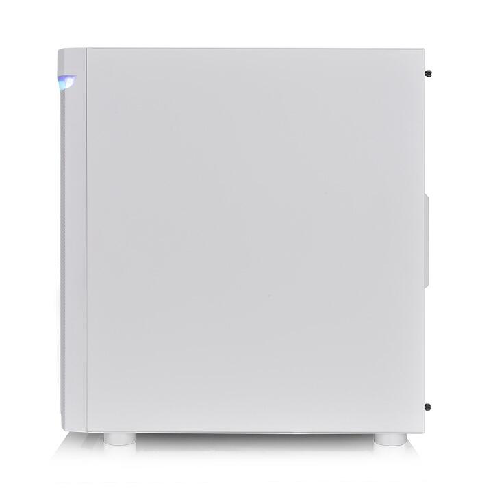 Carcasa Thermaltake H590 Tempered Glass Snow aRGB alba, SPCC Steel ATX Mid Tower, fara sursa (tip ATX, montata jos), interior vopsit alb, 2x3.5”/2.5” (intern), 4x 2.5” (intern), design tool-less, fata – 1x 120mm fan (1100rpm, 22.5 dBA, inclus) sau 3x 140mm / 2x 200mm fans (optional), spate – 1x 120mm fan (1100rpm, 22.5 dBA, inclus), tavan – 3x 120mm / 2x 140mm fan (optional), , design premium cu panou lateral cu balamale din sticla securizata cu grosimea de 4mm si panou frontal din mesh metalic iluminat aRGB, 2x USB 3.0, HD Audio, sloturi expansiune: x7, E-ATX / ATX / microATX / Mini-ITX, inaltime maxima cooler procesor: 160mm, lungime maxima placa video: 360mm, lungime maxim sursa de alimentare: 180mm, suport radiatoare water cooling: fata – 1 x 120/140/240/280/360mm, tavan – 1 x 120/140/240/280mm, spate – 1x 120mm, dimensiuni (HxWxD): 487 x 216 x 467 mm, greutate: 7.45kg