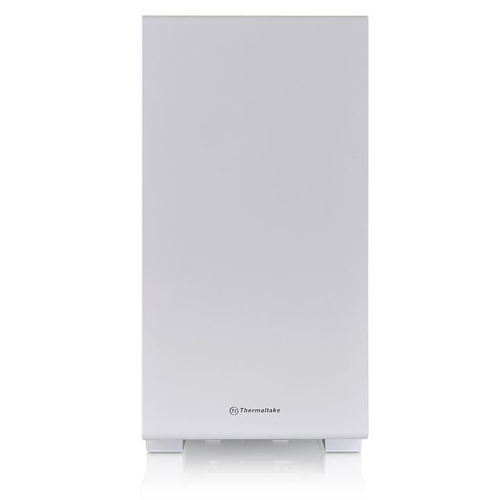 Carcasa Thermaltake S100 Tempered Glass Snow Edition, SPCC Steel ATX Mid Tower, fara sursa (tip ATX, montata jos), interior vopsit negru, design premium cu panou lateral din sticla securizata cu grosimea de 4mm, 2x 3.5”/2.5” (intern), 2x 2.5” (intern), design tool-less, fata – 2x 120/140 fans (optional), spate – 1x 120mm fan (1000 RPM, 16dBA, inclus), tavan – 2x 120mm / 140mm / 1x 200mm fans (optional), 1x USB 3.0, 2x USB 2.0, HD Audio, sloturi expansiune: x4, microATX / Mini-ITX, inaltime maxima cooler procesor: 165mm, lungime maxima placa video: 330mm, suport radiatoare water cooling: fata – 1 x 240/280mm, tavan – 1 x 240/280mm, spate – 1x 120mm, dimensiuni (HxWxD): 411 x 220 x 441 mm, greutate: 6.1kg
